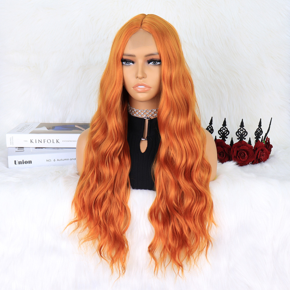 Kızıl Kahve Fiber Sentetik Geniş Dalgalı Tül Peruk