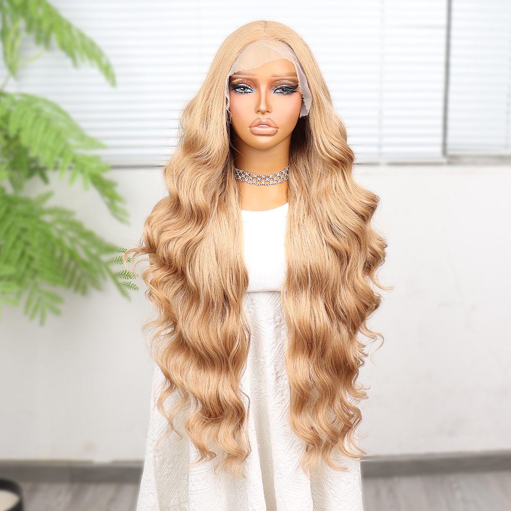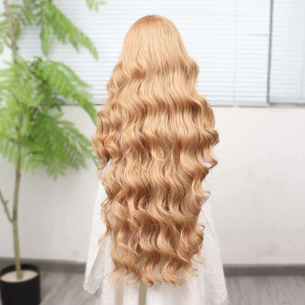 Kahve Karamel Geniş Dalgalı Fiber Sentetik Tül Peruk