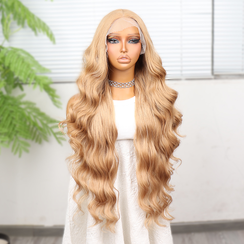 Perçemli Uzun Su Dalgası Fiber Sentetik Peruk- Ombre ve Röfleli