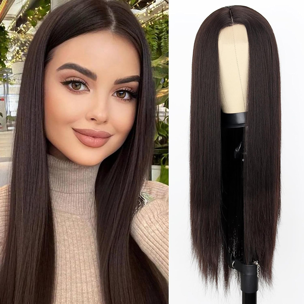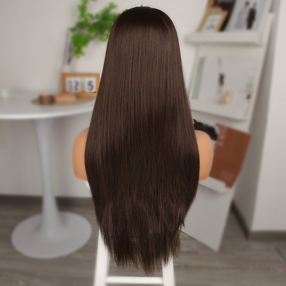 Koyu Kumral Ekstra Uzun Fiber Sentetik Dalgalı Tül Peruk