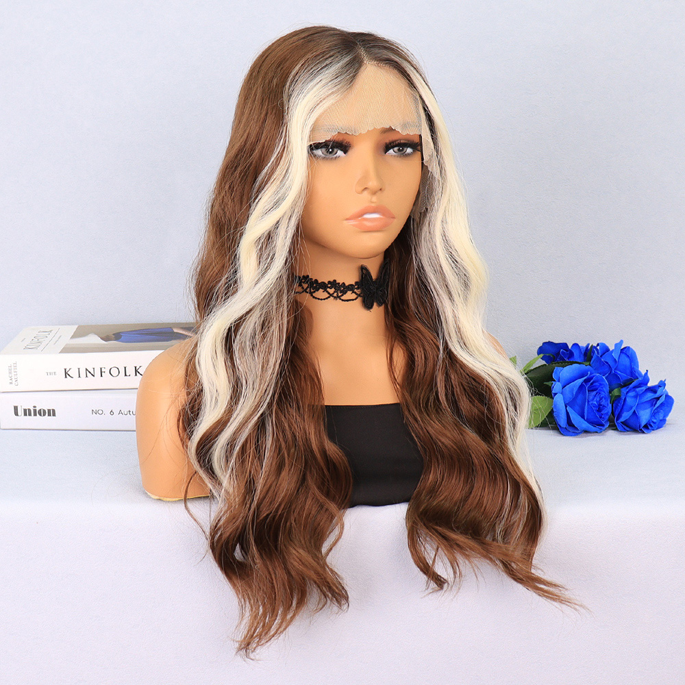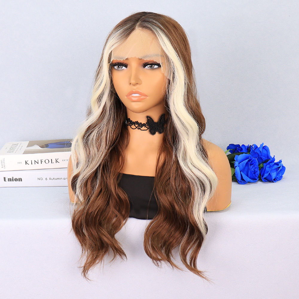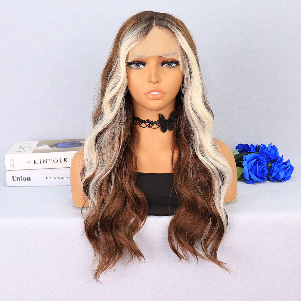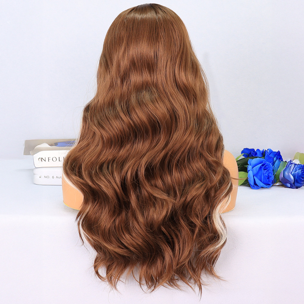 Perçemli Uzun Su Dalgası Fiber Sentetik Peruk- Ombre ve Röfleli