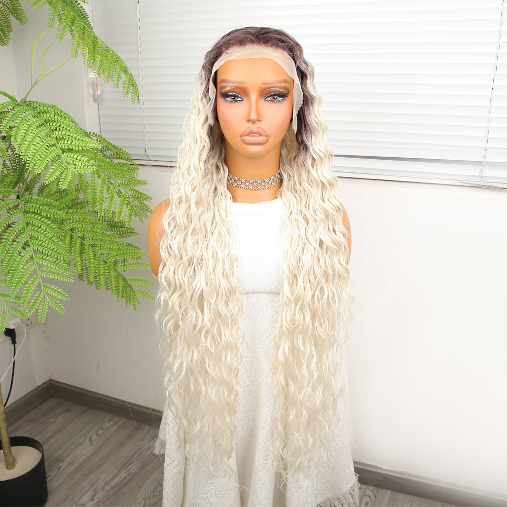 Kumral Beyaz Platin Ombreli Ekstra Uzun Fiber Sentetik Dalgalı Tül Peruk