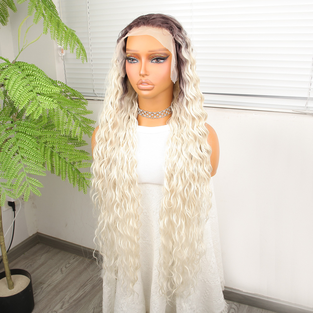 Perçemli Uzun Su Dalgası Fiber Sentetik Peruk- Ombre ve Röfleli