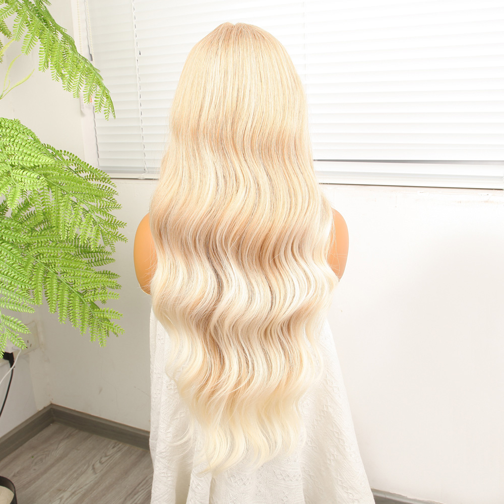 Uzun Su Dalgası Fiber Sentetik Peruk - Küllü Kumral / Beyaz Platin Ombre