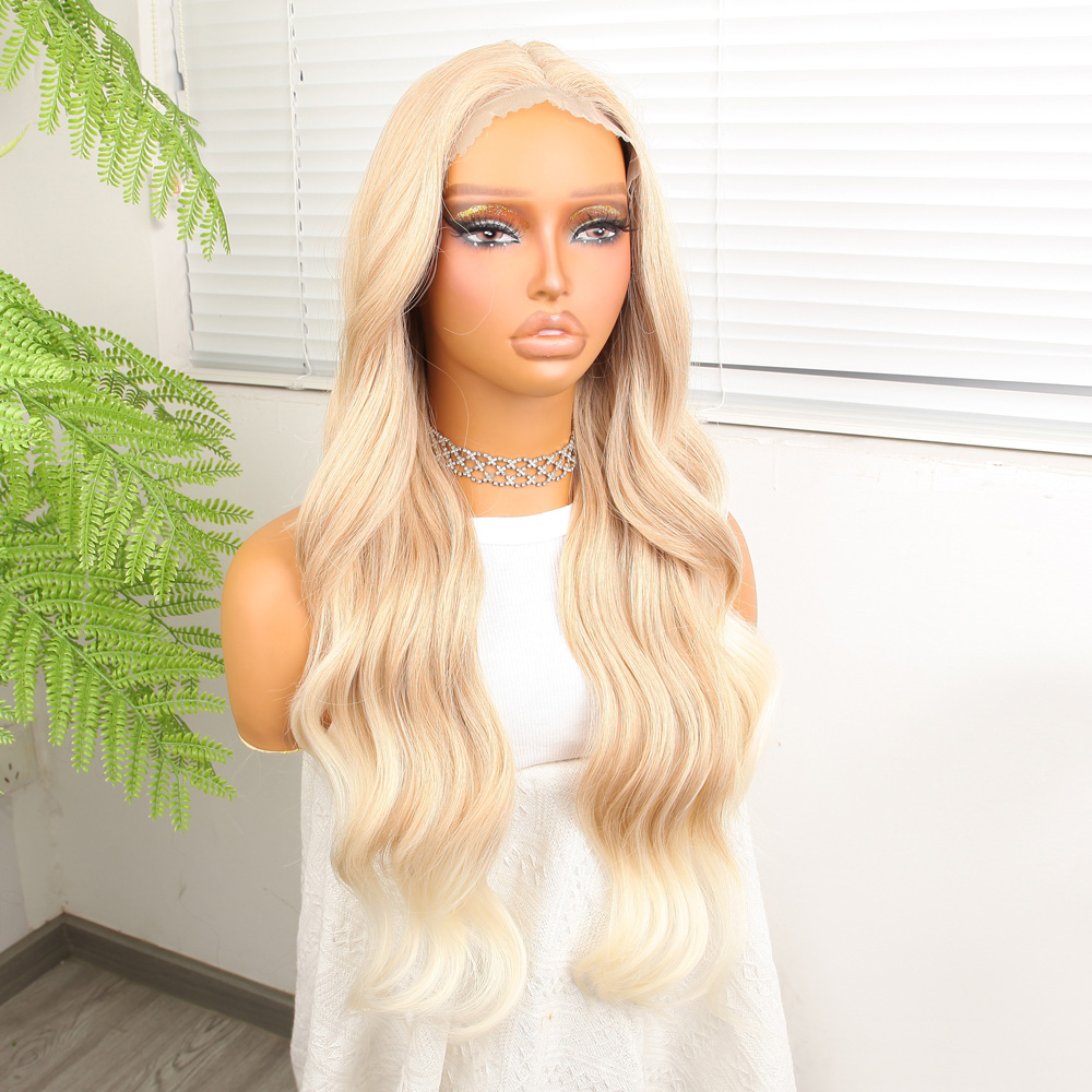 Perçemli Uzun Su Dalgası Fiber Sentetik Peruk- Ombre ve Röfleli