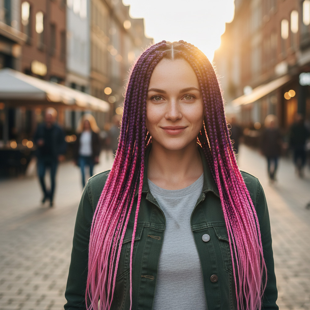 Afrika Örgüsü Ve Rasta İçin Sentetik Ombreli Saç - Koyu Pembe / Pembe / Açık Pembe