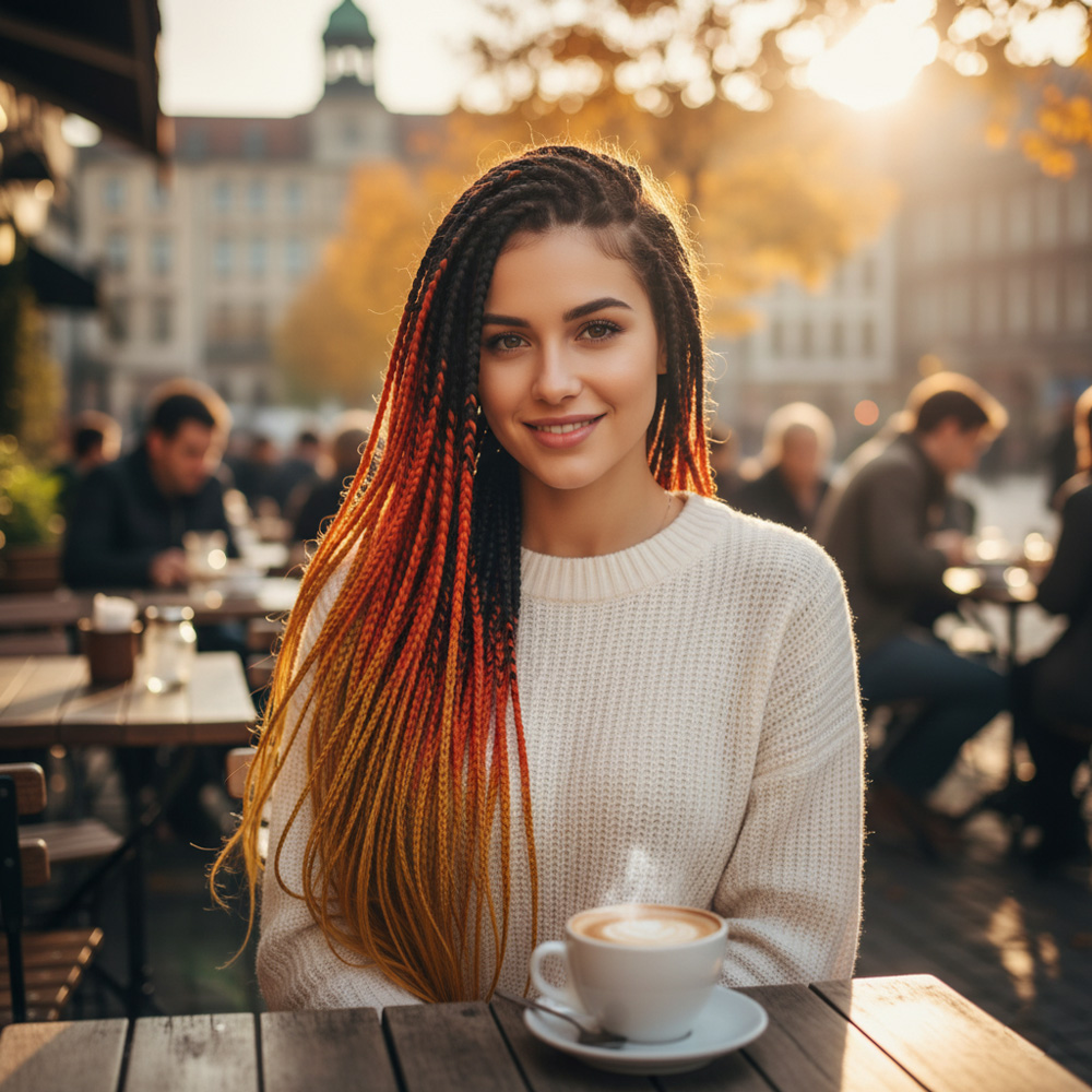Afrika Örgüsü Ve Rasta İçin Sentetik Ombreli Saç - Siyah / Bakır / Karamel