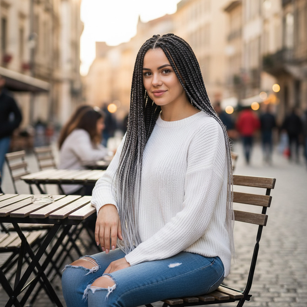 Afrika Örgüsü Ve Rasta İçin Sentetik Ombreli Saç - Siyah / Koyu Gri / Açık Gri
