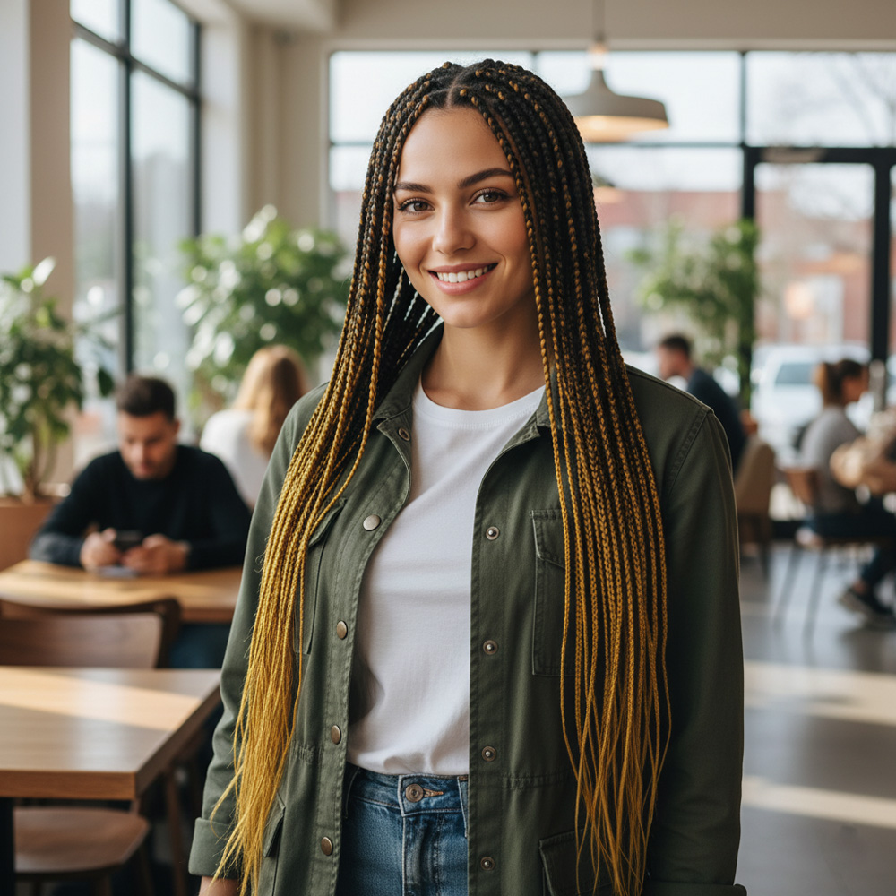 Afrika Örgüsü Ve Rasta İçin Sentetik Ombreli Saç - Siyah / Koyu Karamel