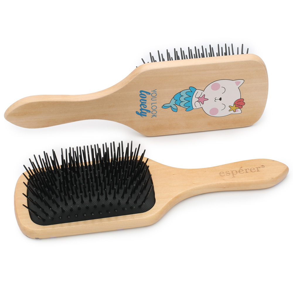 Ahşap, Topuzsuz ve Baskılı Saç Açma Fırçası - JT8586-03