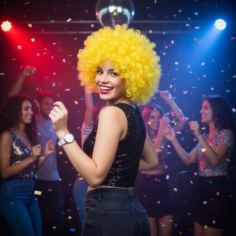 Animasyon, parti ve palyaço peruğudur, renklidir.
