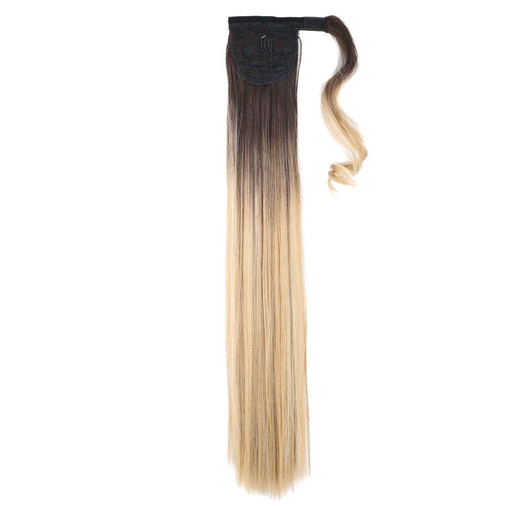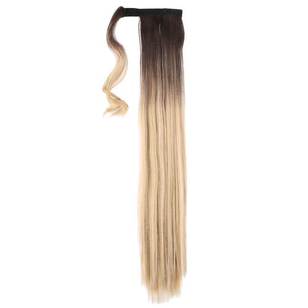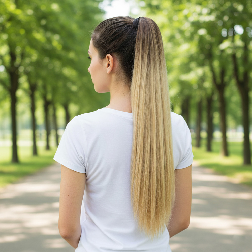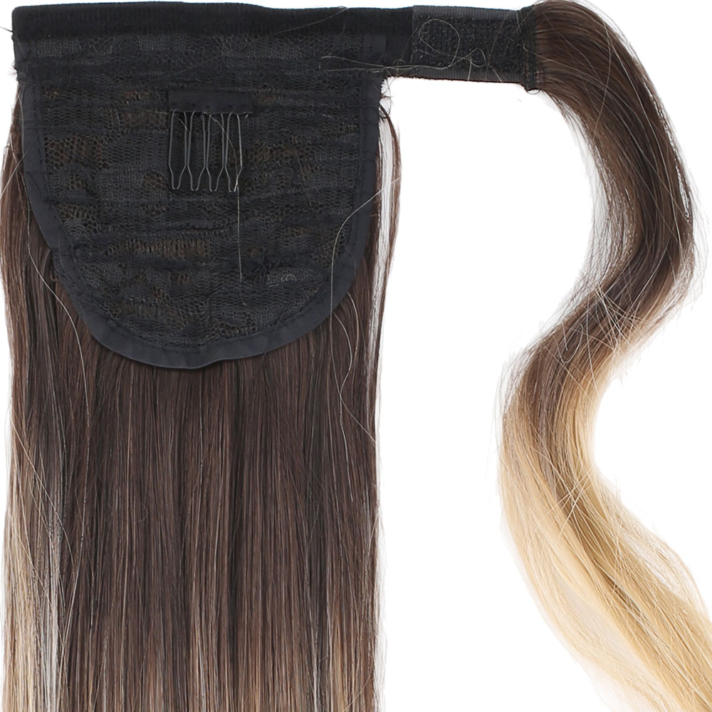 Bağlamalı Düz At Kuyruğu - Kahve / Bal Köpüğü Ombre ve Platin Işıltılı