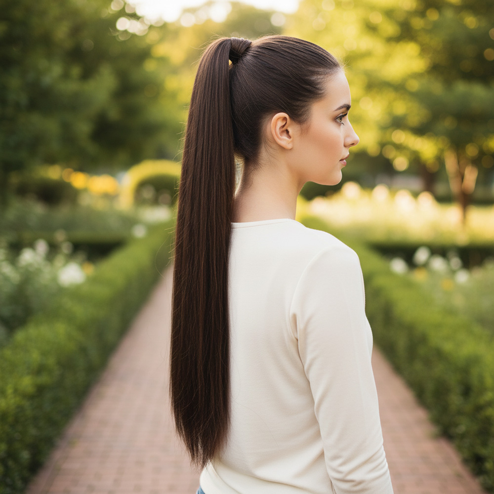 Üçlü Örgülü Tokalı Bağlamalı At Kuyruğu - Kahverengi