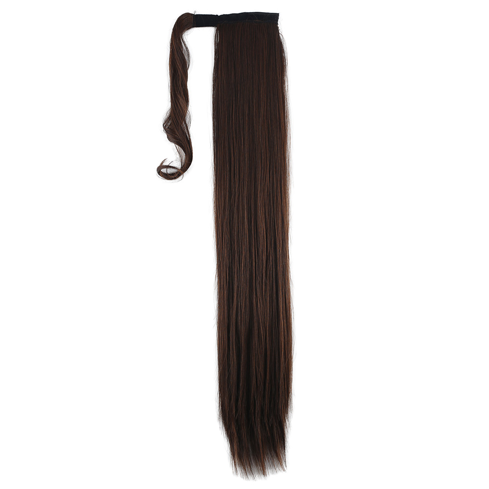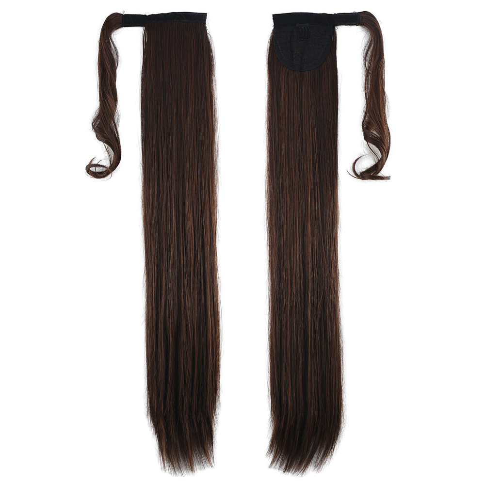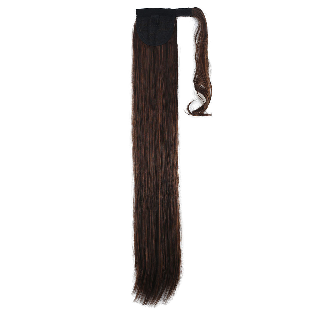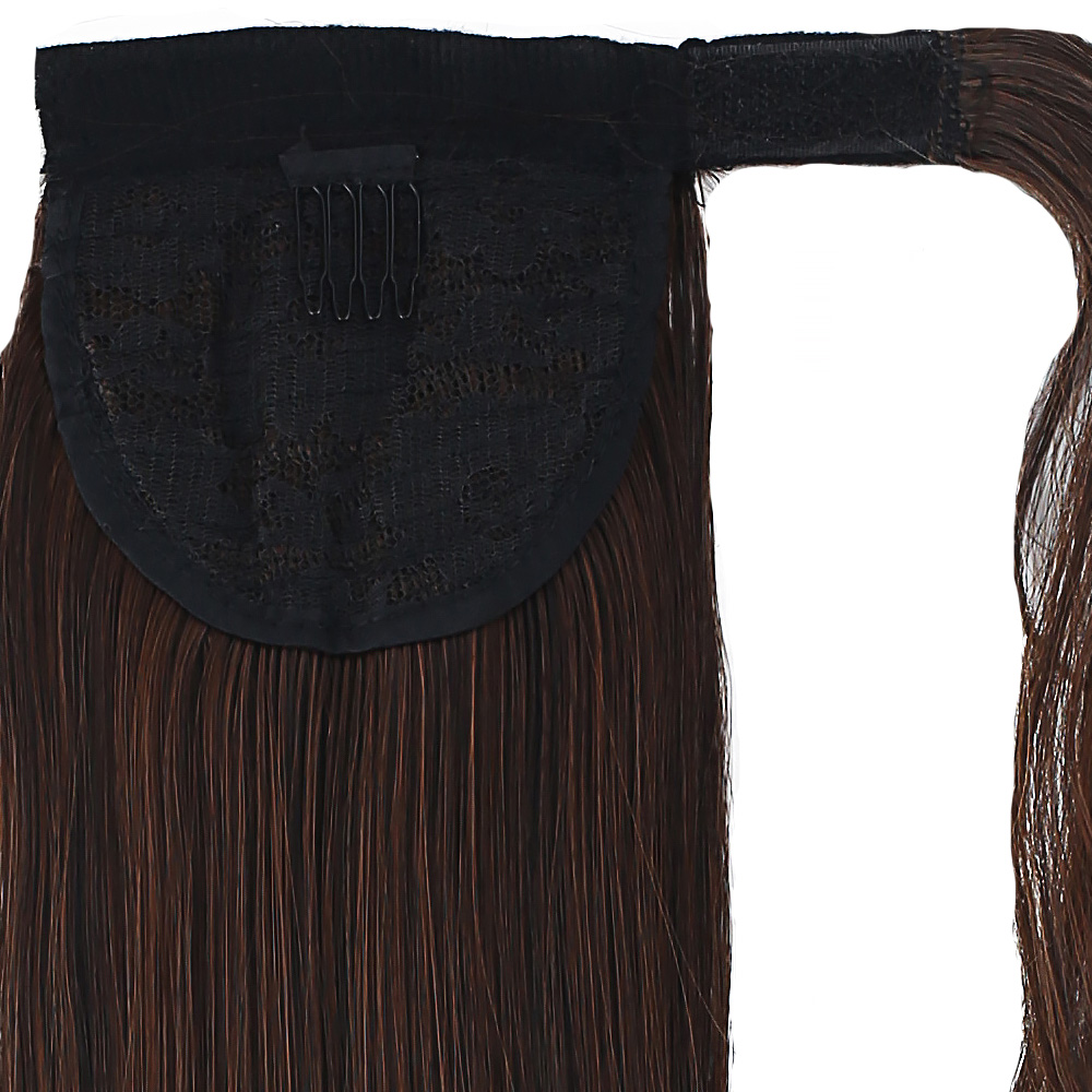 Üçlü Örgülü Tokalı Bağlamalı At Kuyruğu - Koyu Kestane