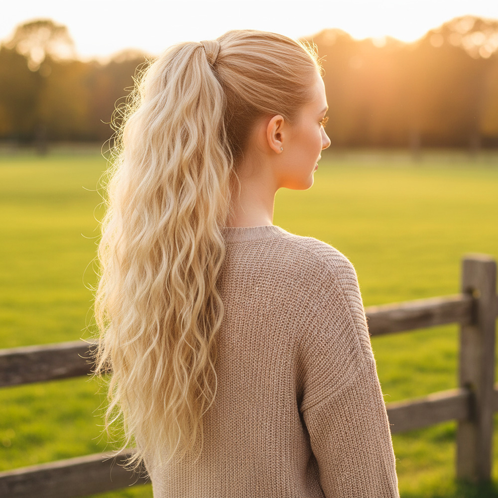 Bağlamalı Kabarık Dalgalı At Kuyruğu - Balköpüğü Beyaz Platin Röfleli