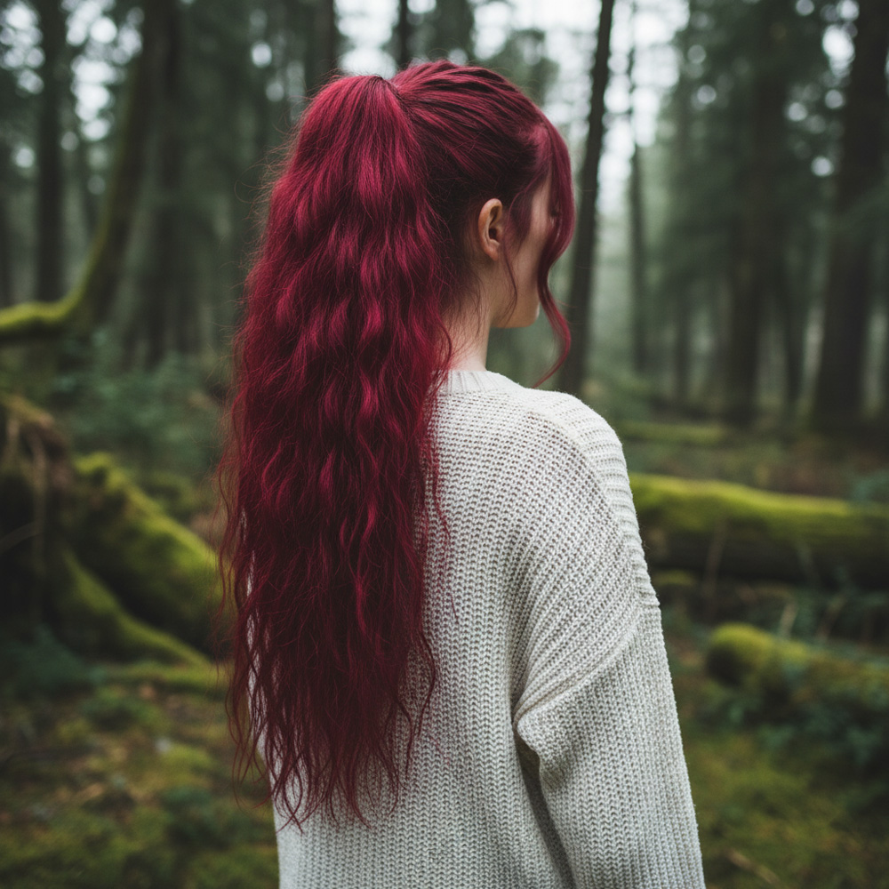 Bağlamalı Kabarık Dalgalı At Kuyruğu - Kızıl