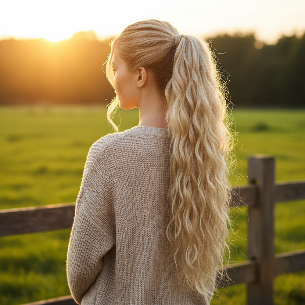 Bağlamalı Kabarık Dalgalı At Kuyruğu - Kumral Beyaz Platin Röfleli