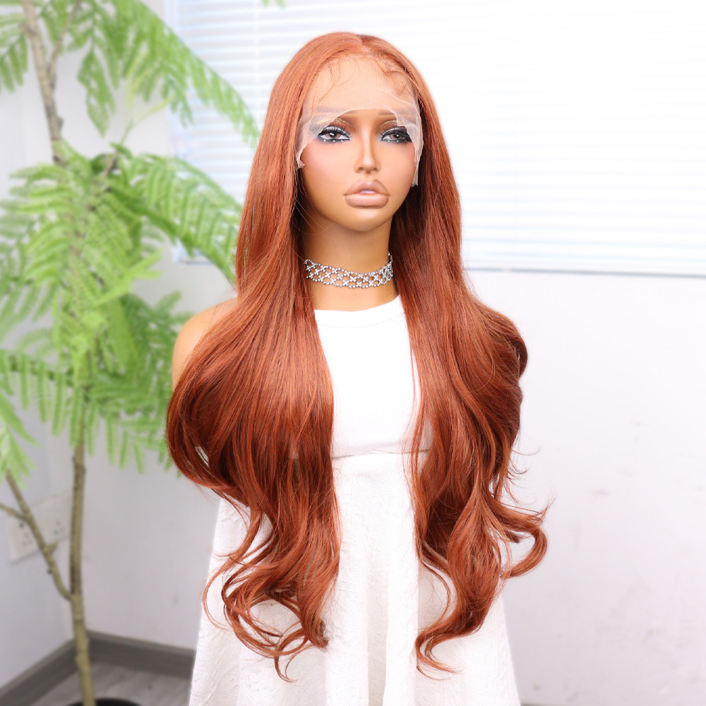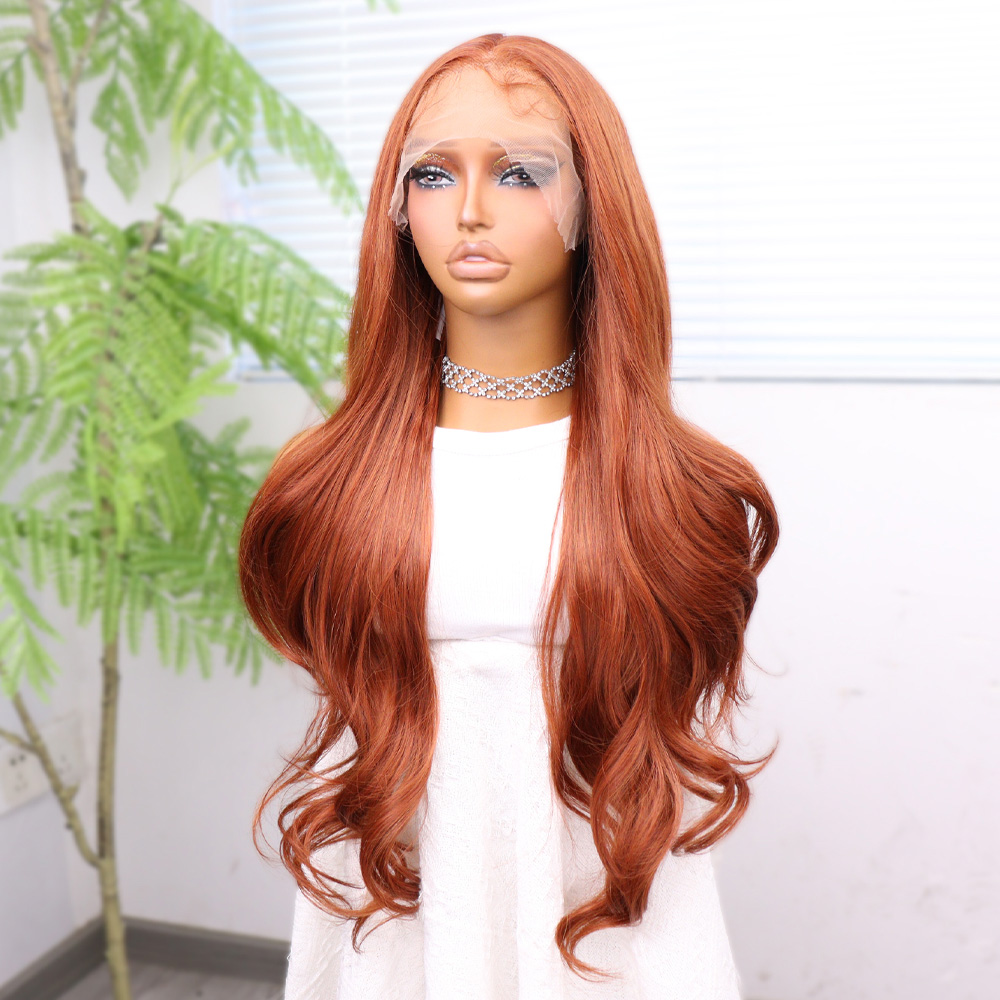 Kızıl Kahve Fiber Sentetik Geniş Dalgalı Tül Peruk