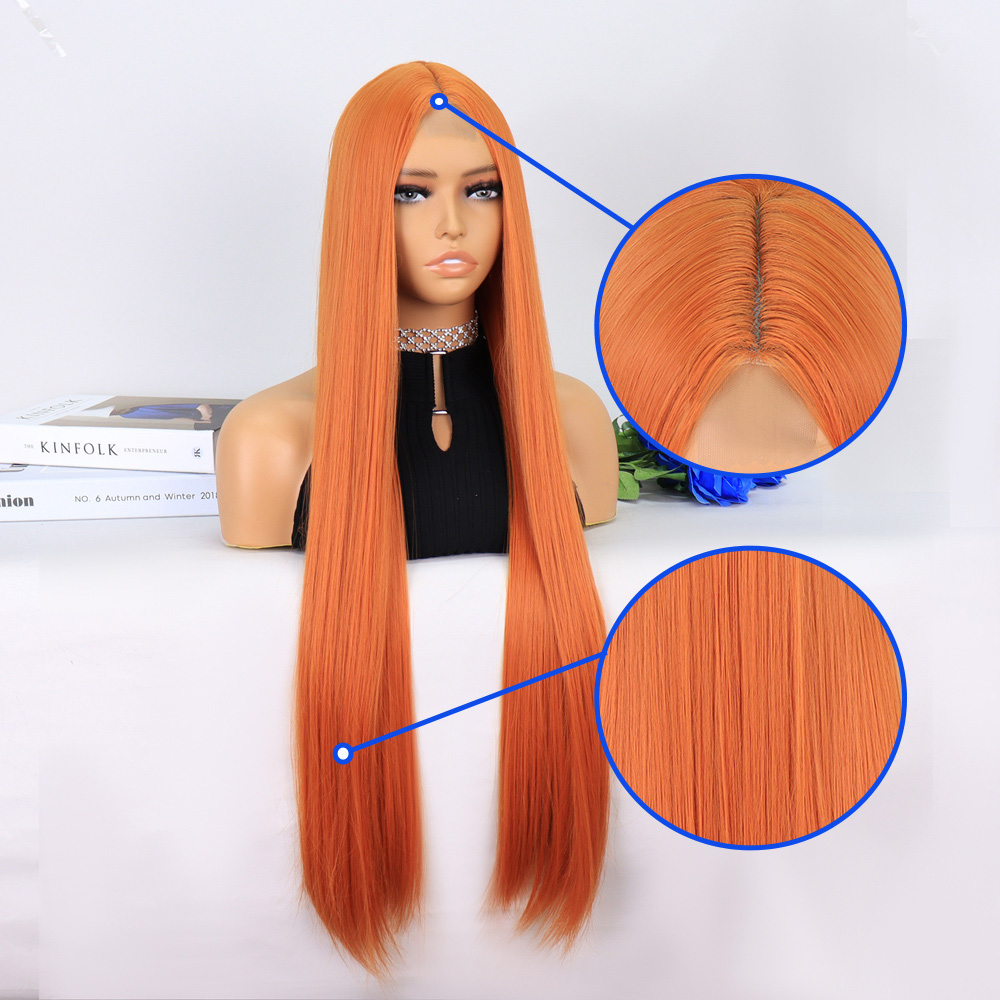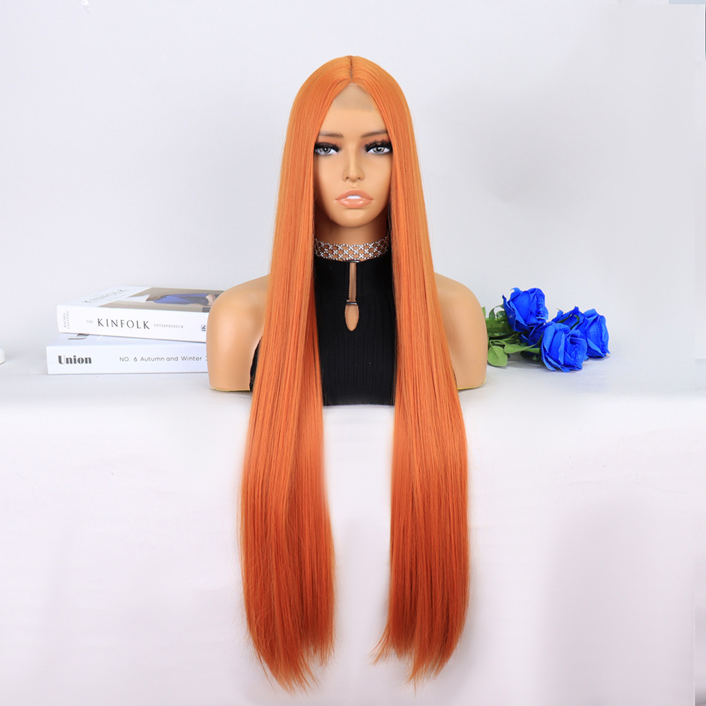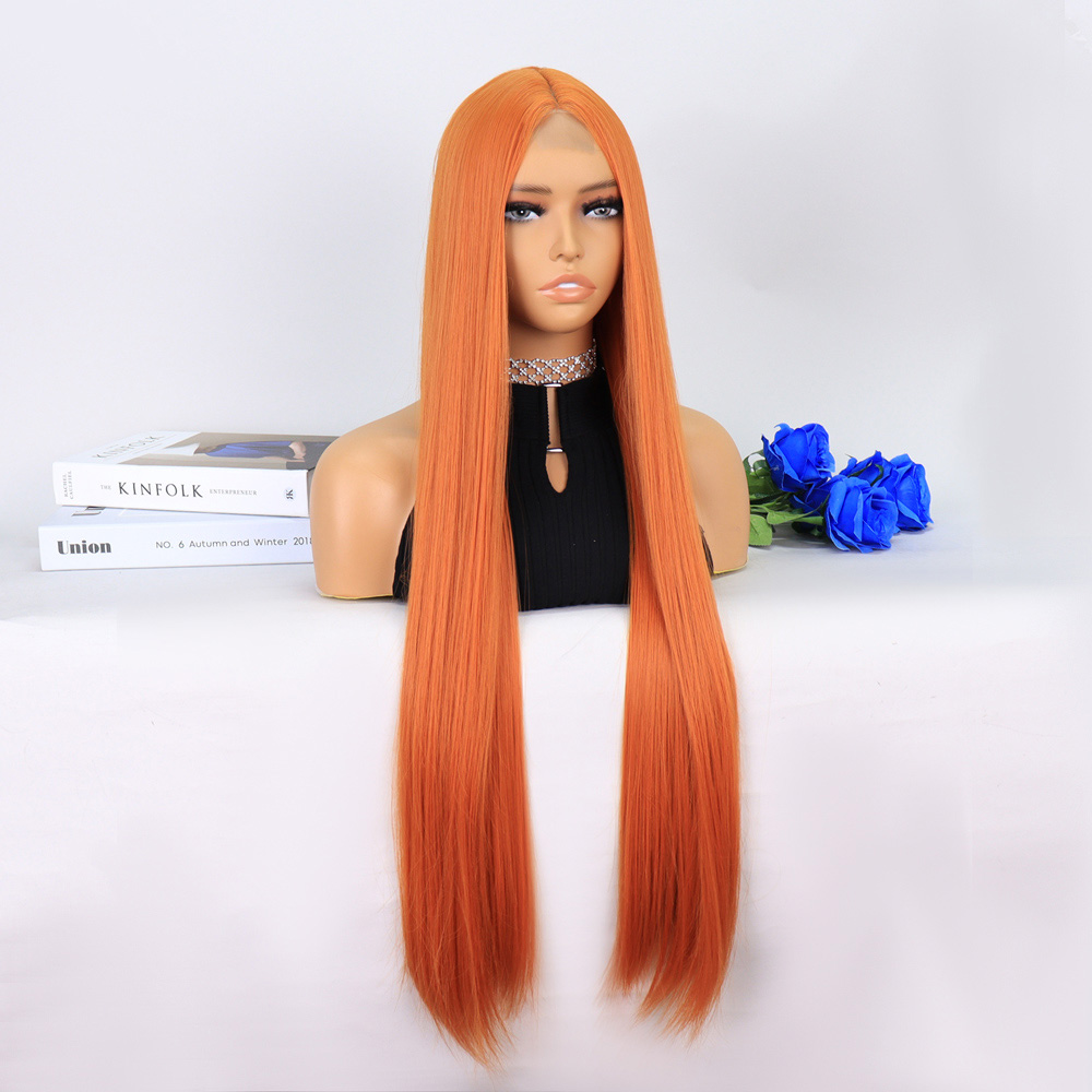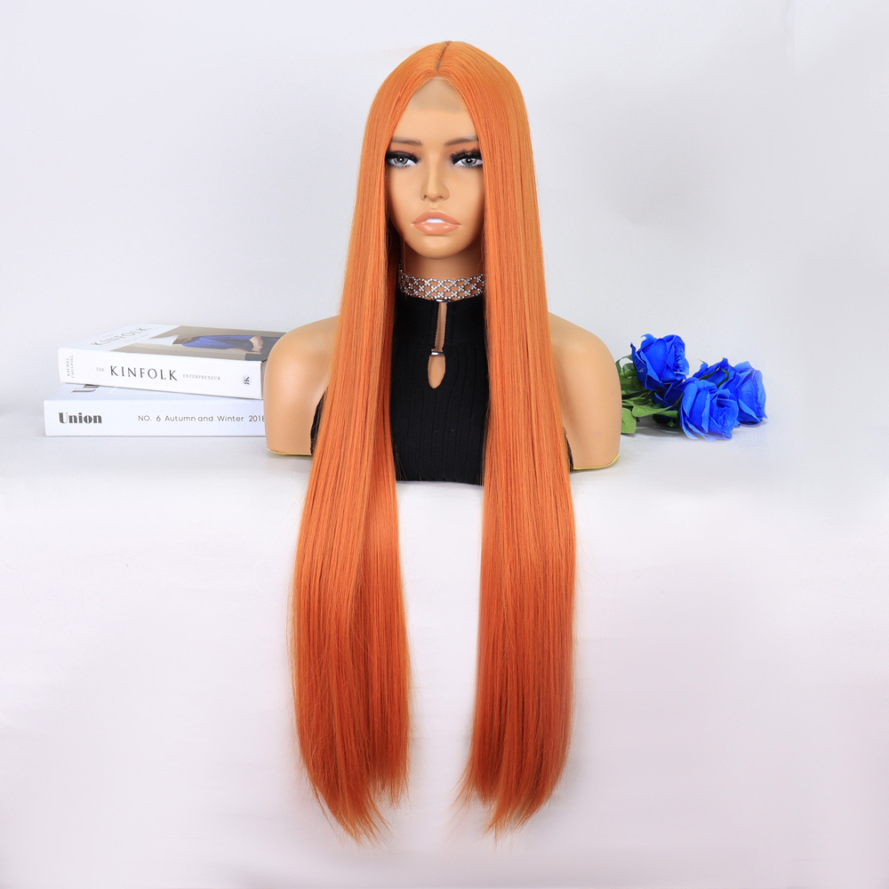 Kızıl Kahve Fiber Sentetik Geniş Dalgalı Tül Peruk