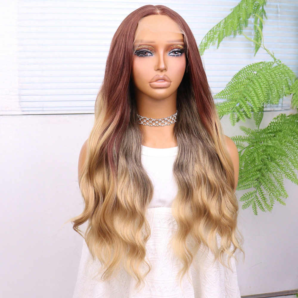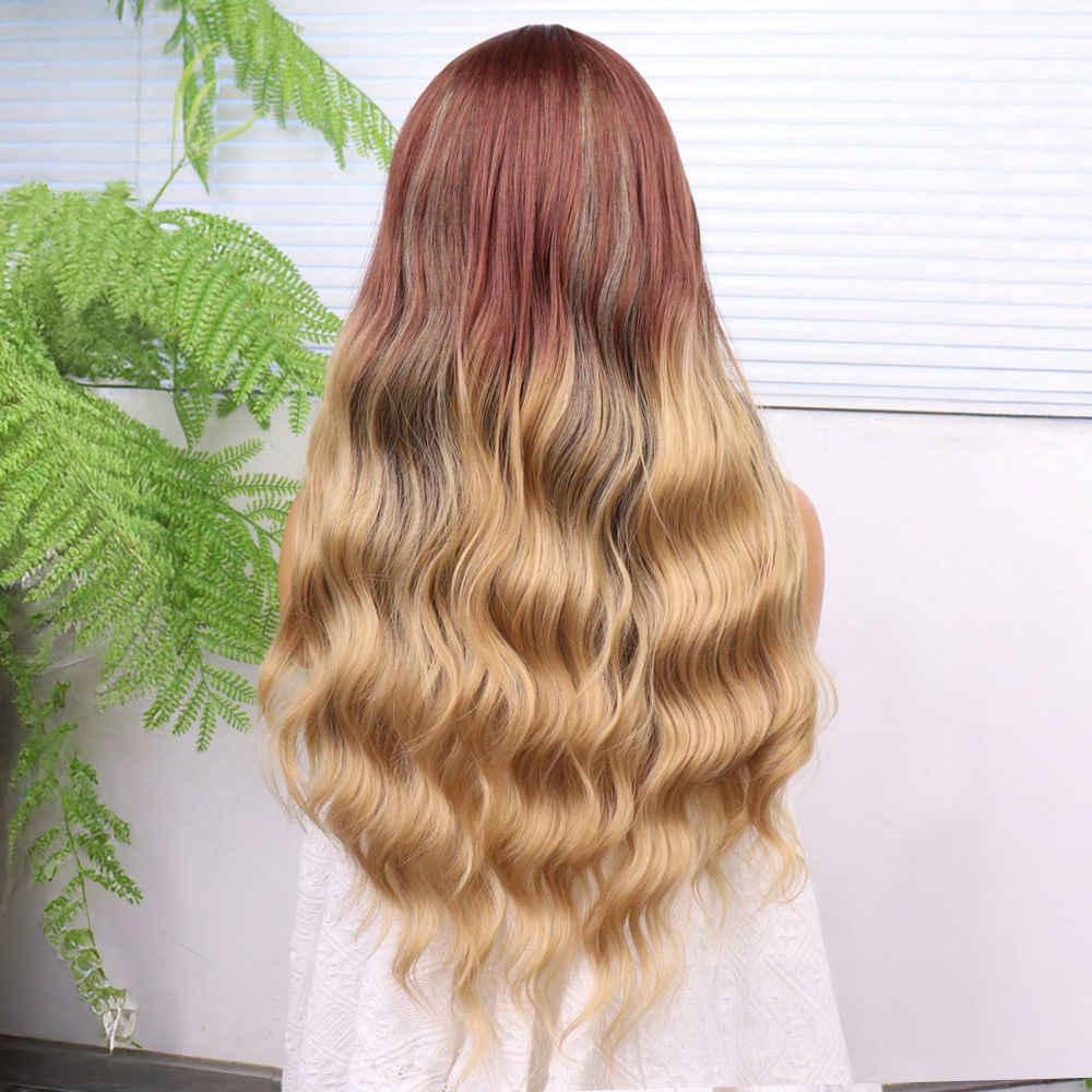 Perçemli Uzun Su Dalgası Fiber Sentetik Peruk- Ombre ve Röfleli