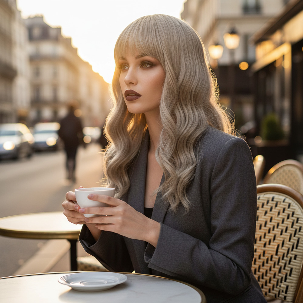 Dalgalı Kısa Perçemli Fiber Sentetik Peruk - Balköpüğü / Platin Röfleli