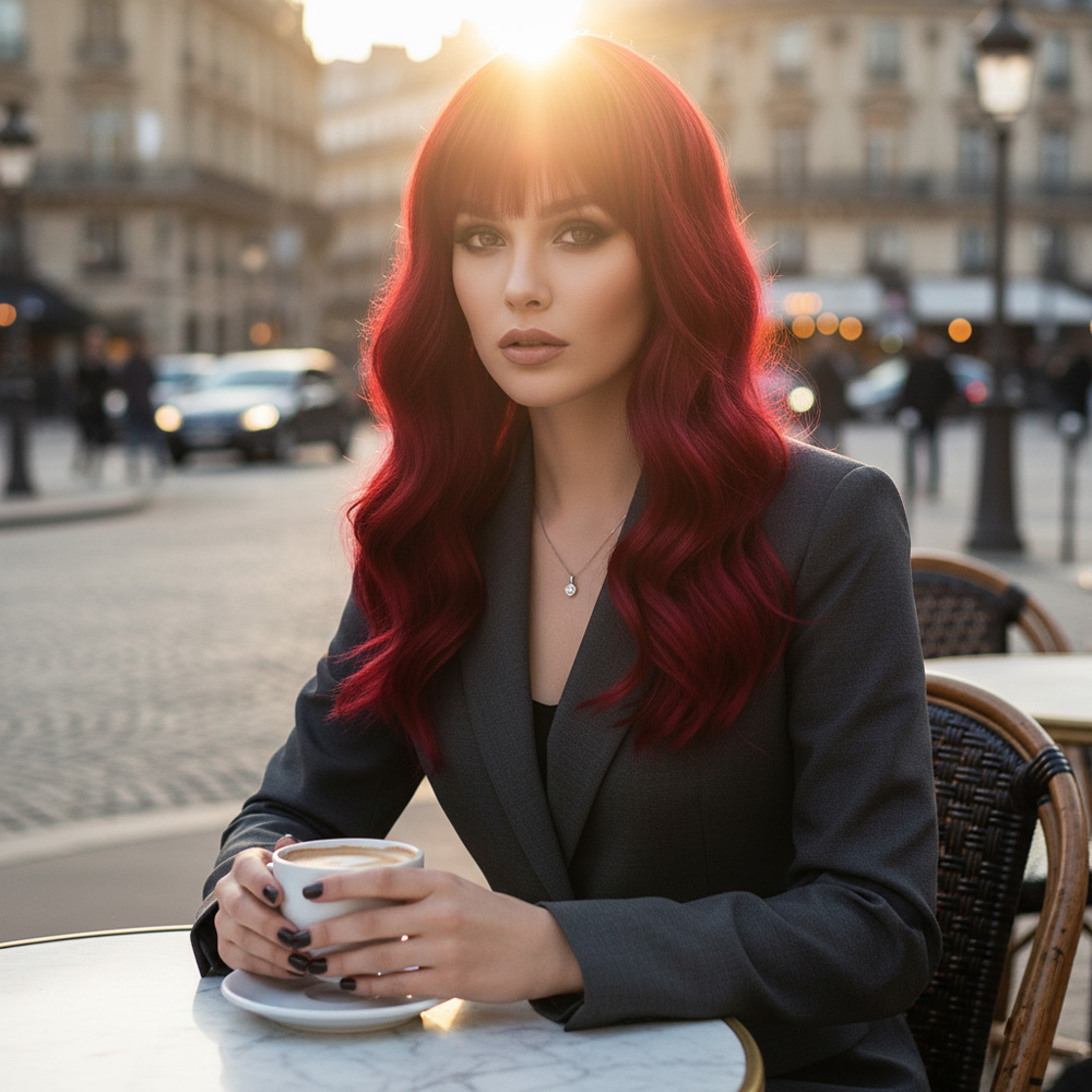 Dalgalı Kısa Perçemli Fiber Sentetik Peruk - Kızıl