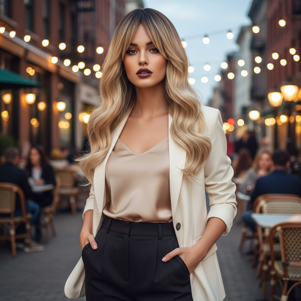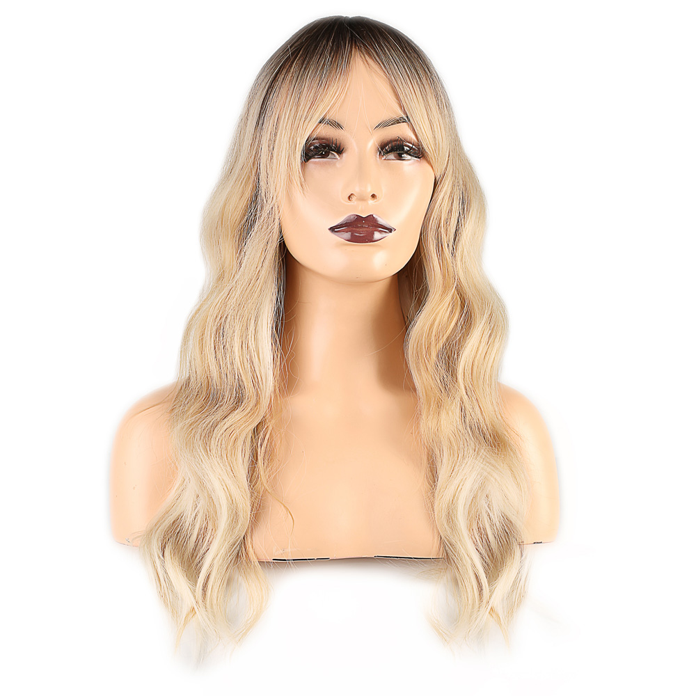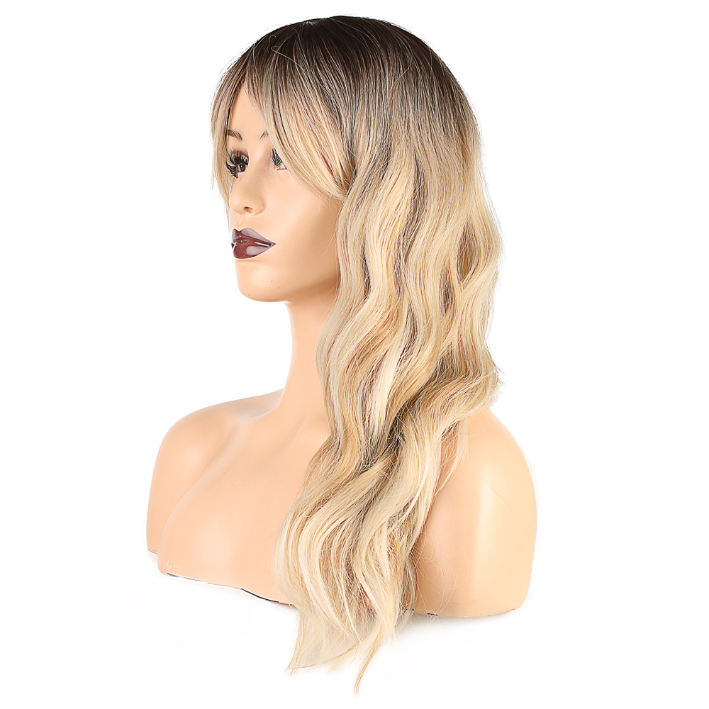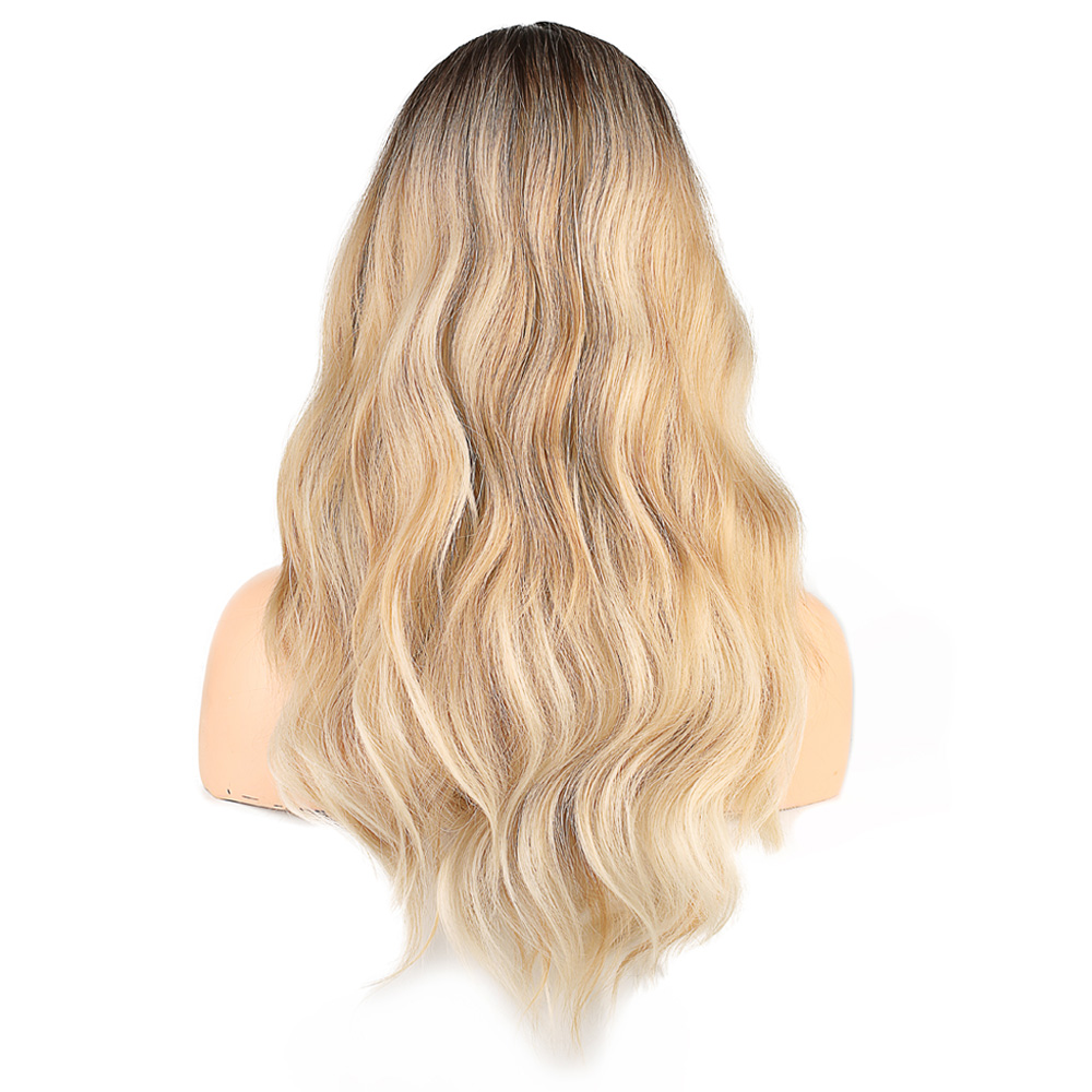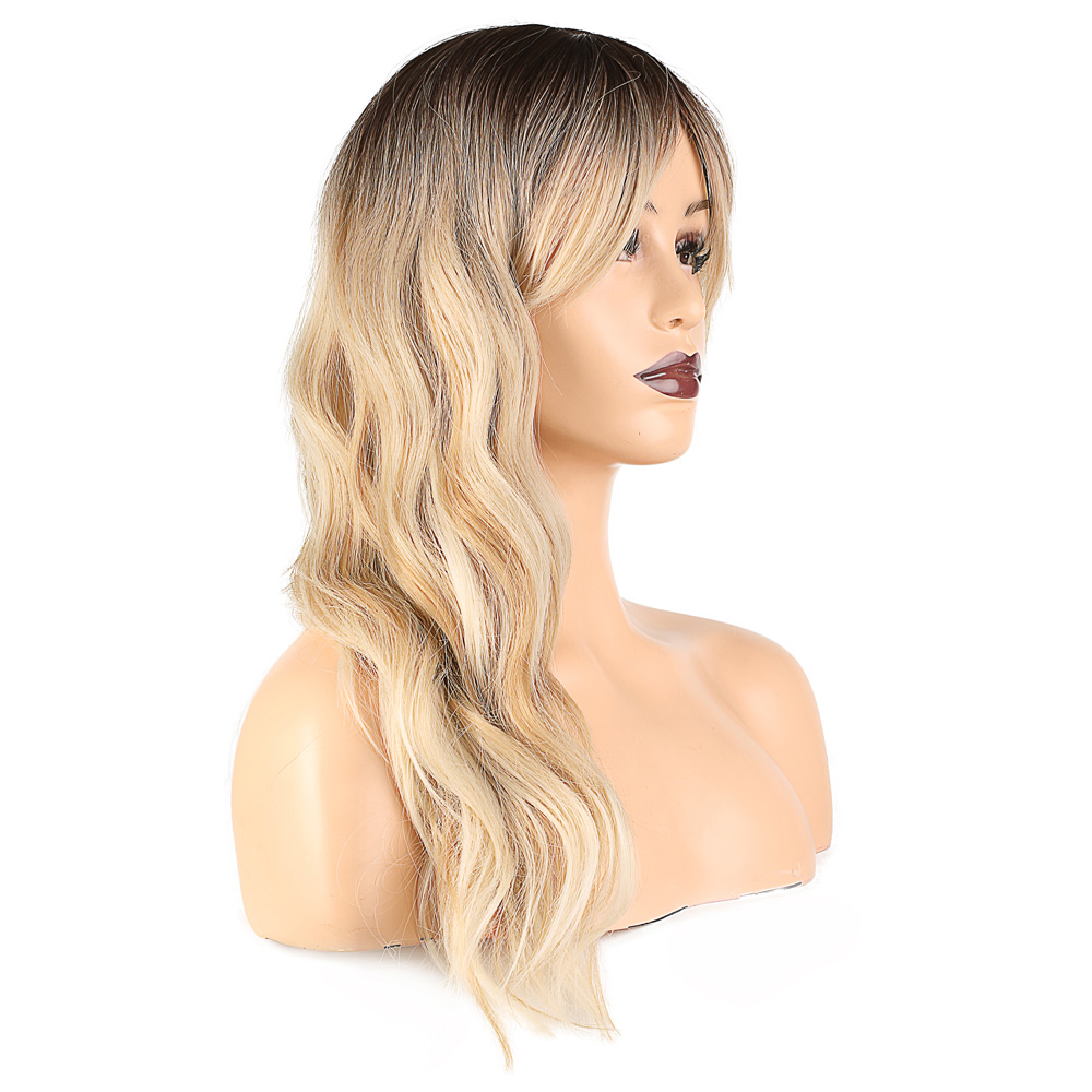Dalgalı Perçemli Fiber Sentetik Orta Boy Peruk - Kahve Platin Röfleli