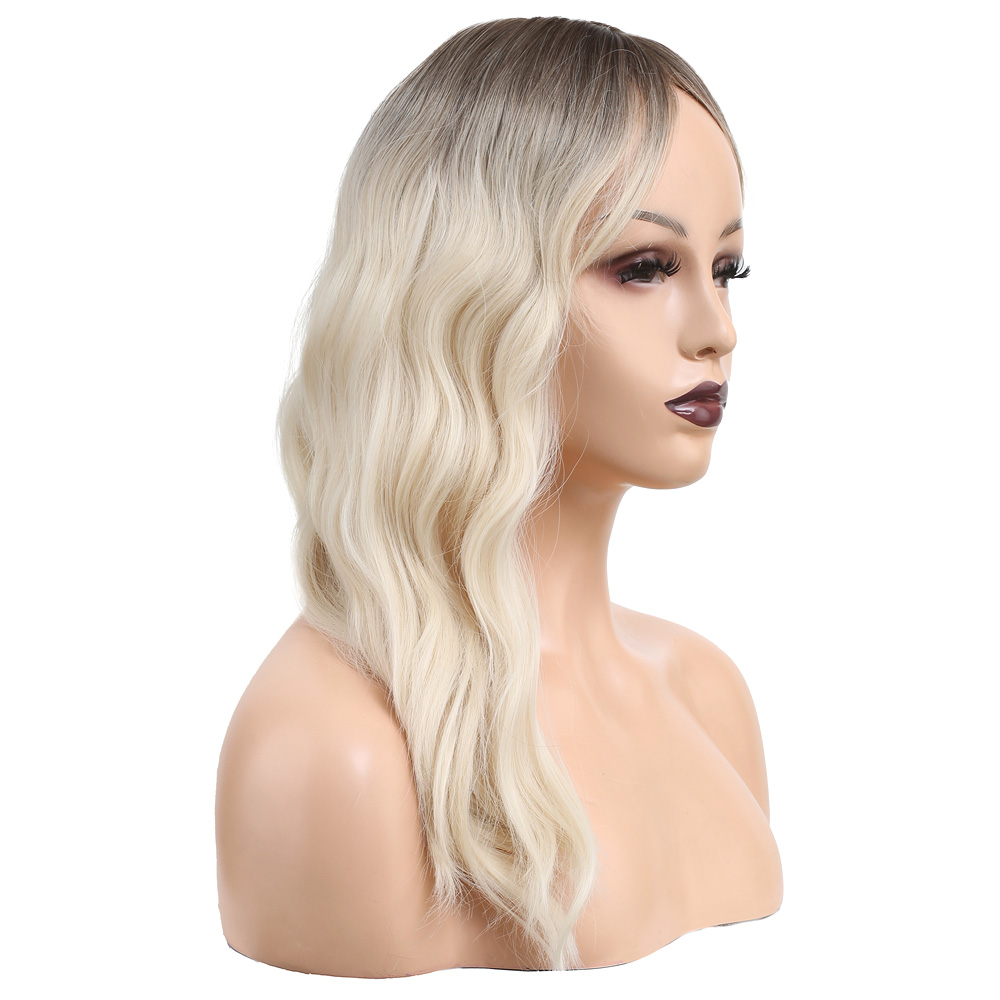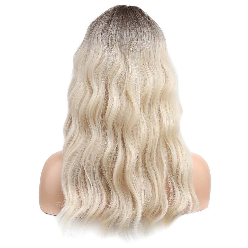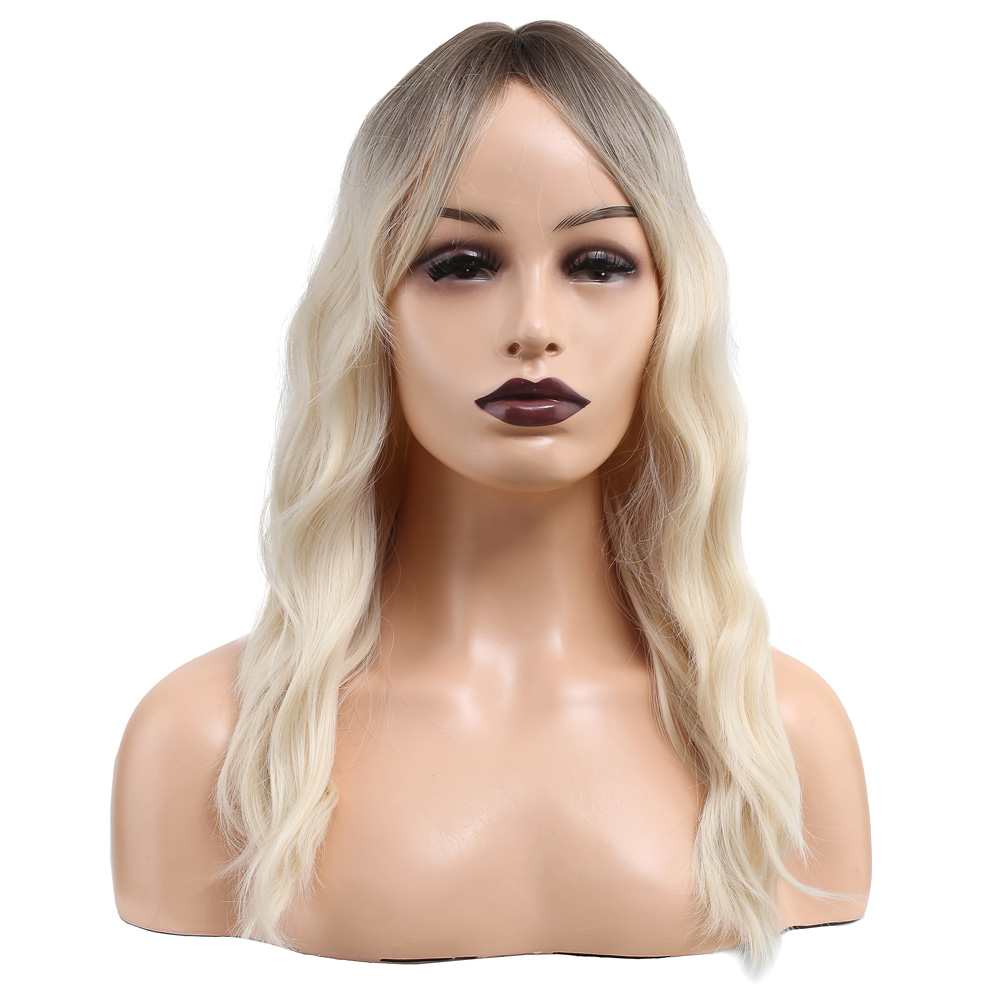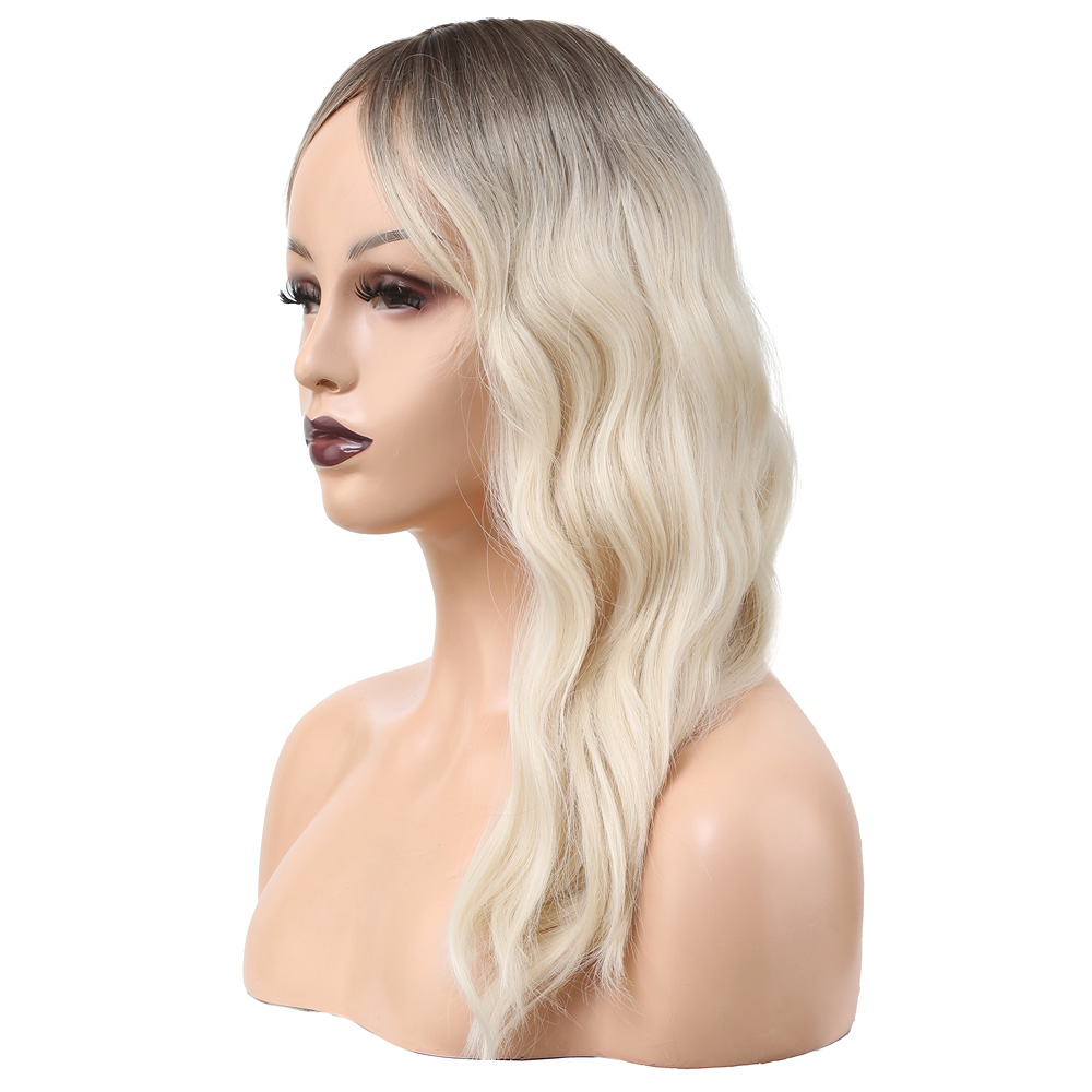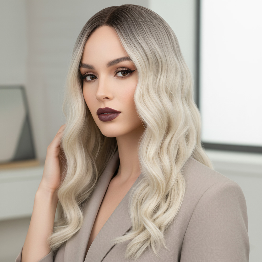 Dalgalı Perçemli Fiber Sentetik Orta Boy Peruk - Kumral / Beyaz Platin Ombreli