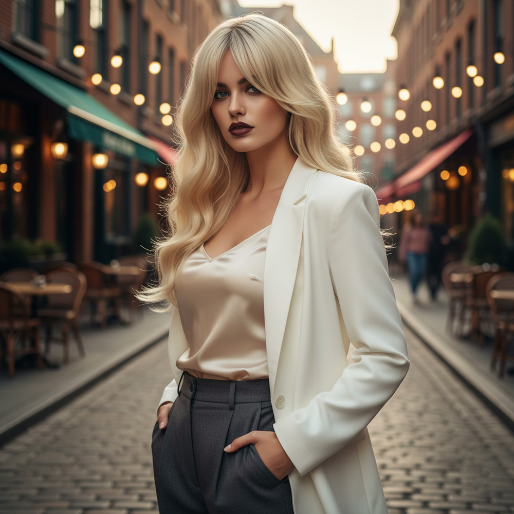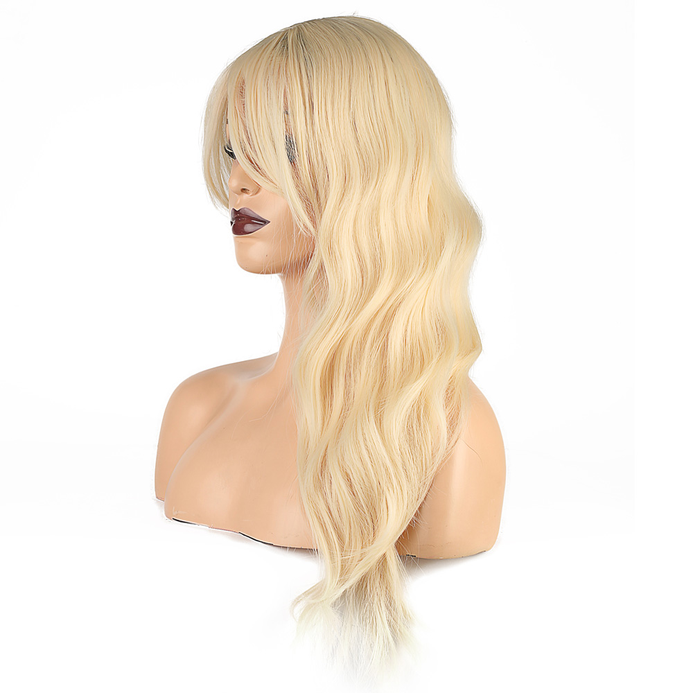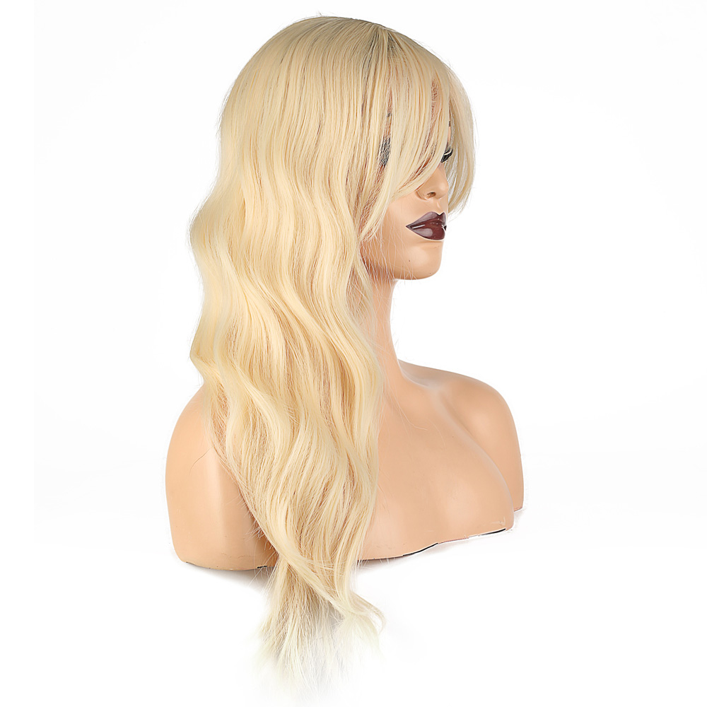 Dalgalı Perçemli Fiber Sentetik Orta Boy Peruk - Platin