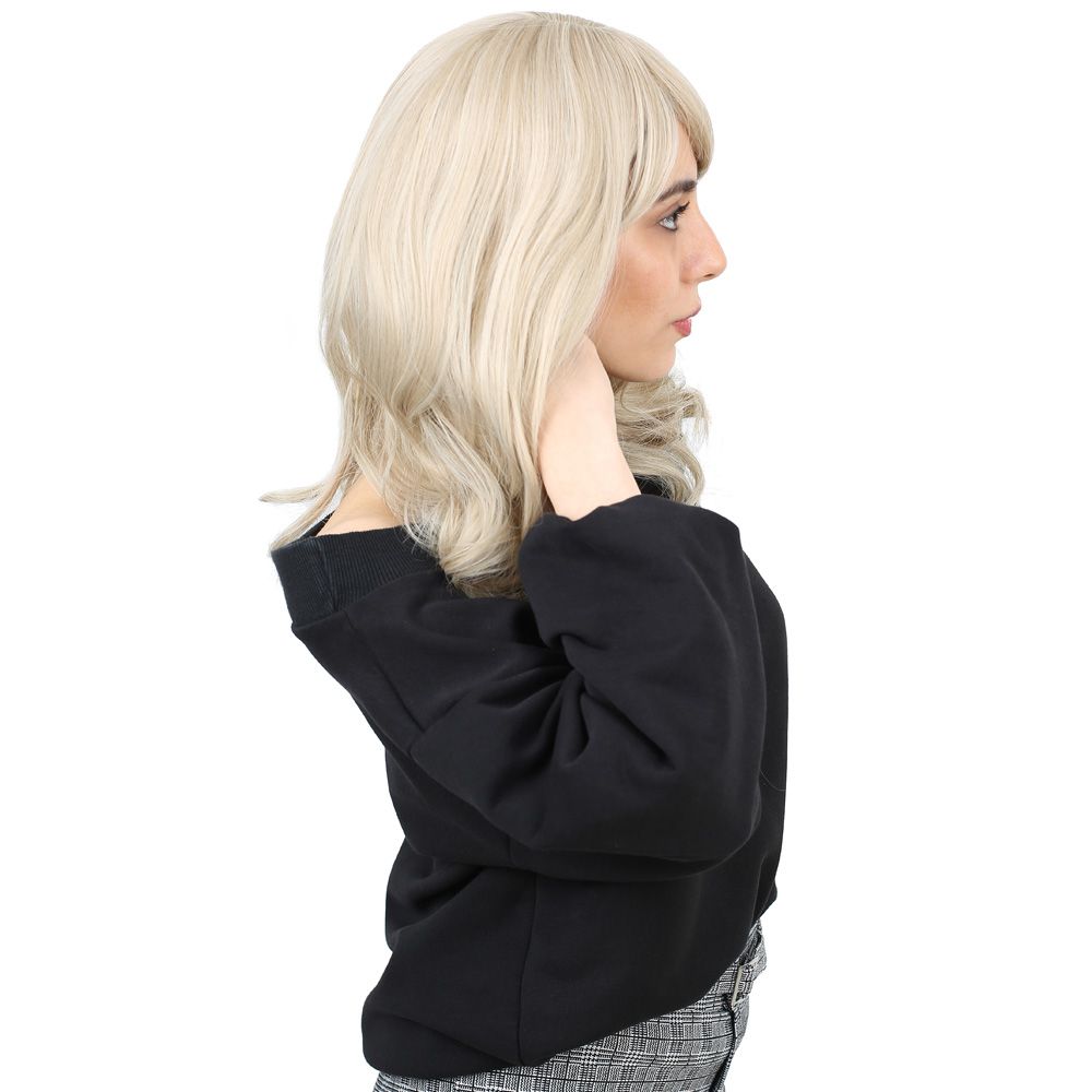 Dalgalı Perçemli Orta Boy Fiber Sentetik Peruk - Balköpüğü / Platin Röfleli