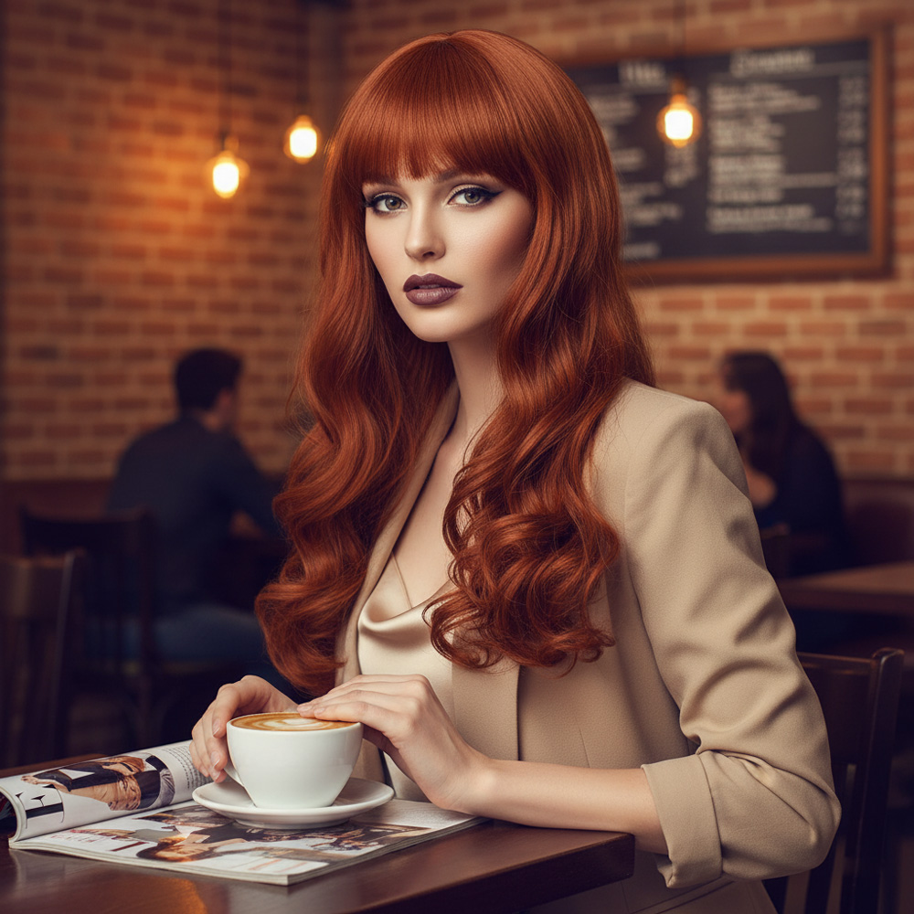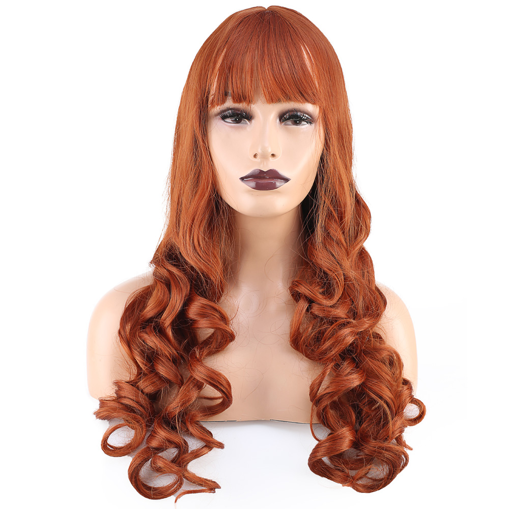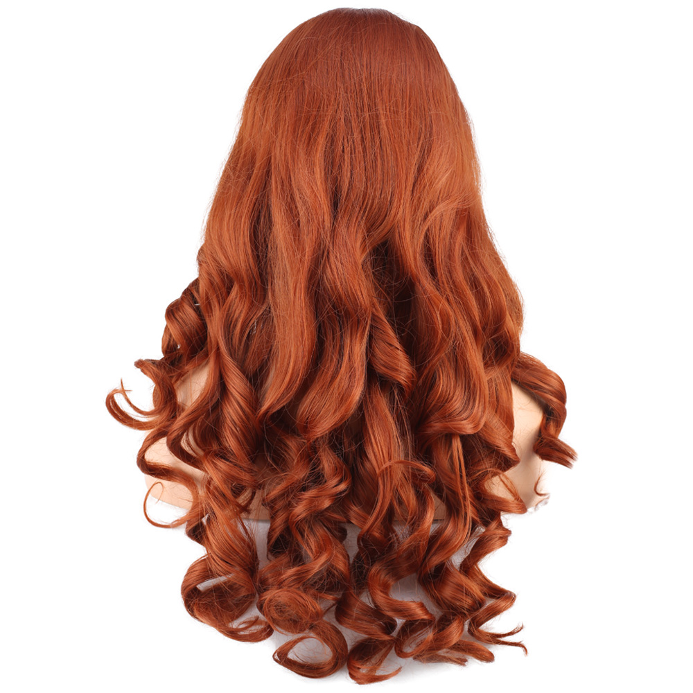 Dalgalı Perçemli Uzun Fiber Sentetik Peruk - Bakır