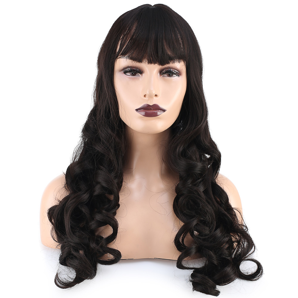 Dalgalı Perçemli Uzun Fiber Sentetik Peruk - Kahverengi