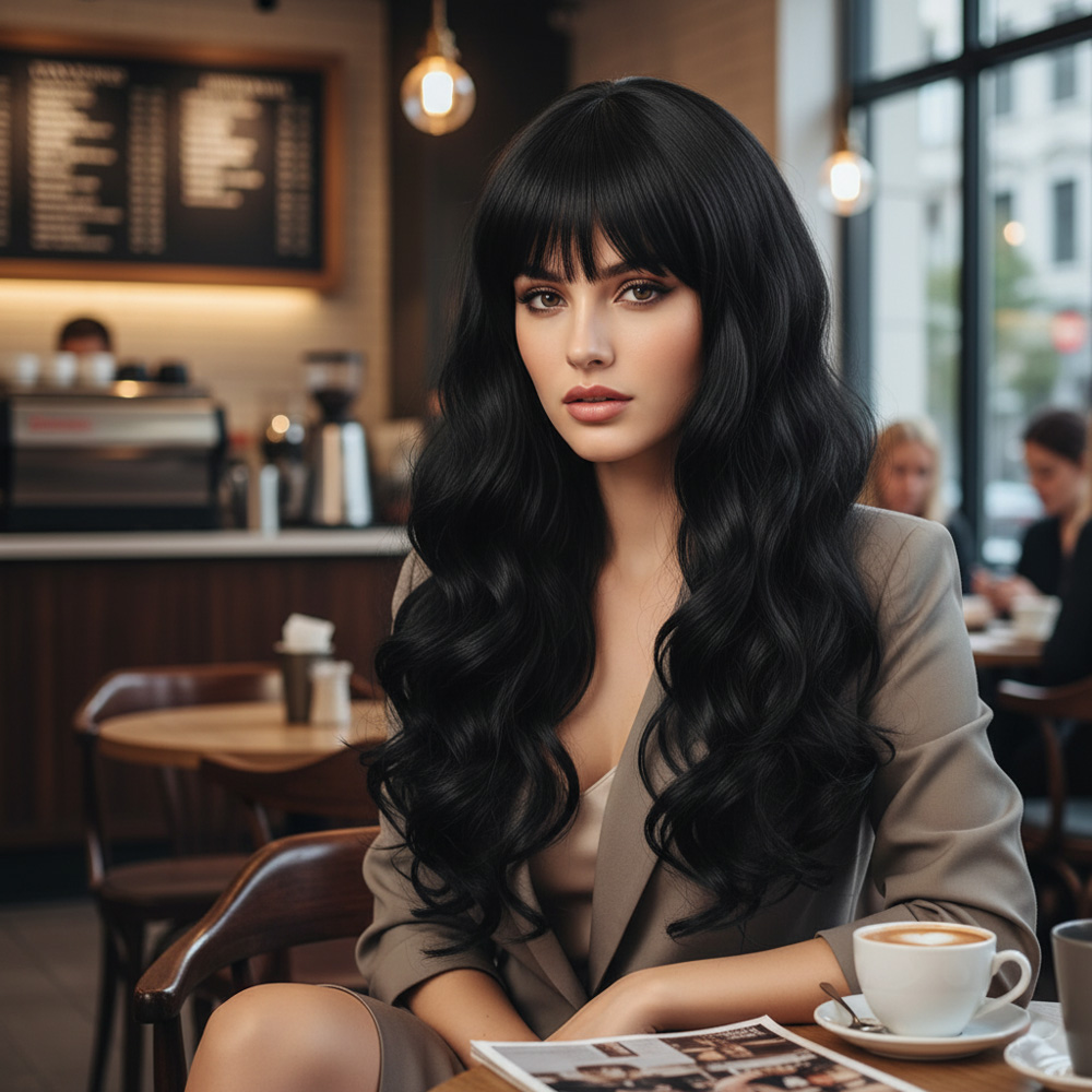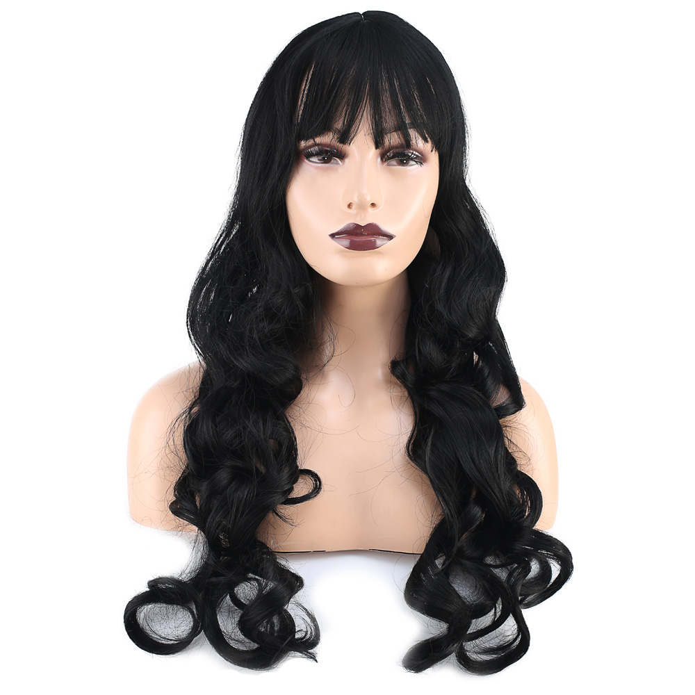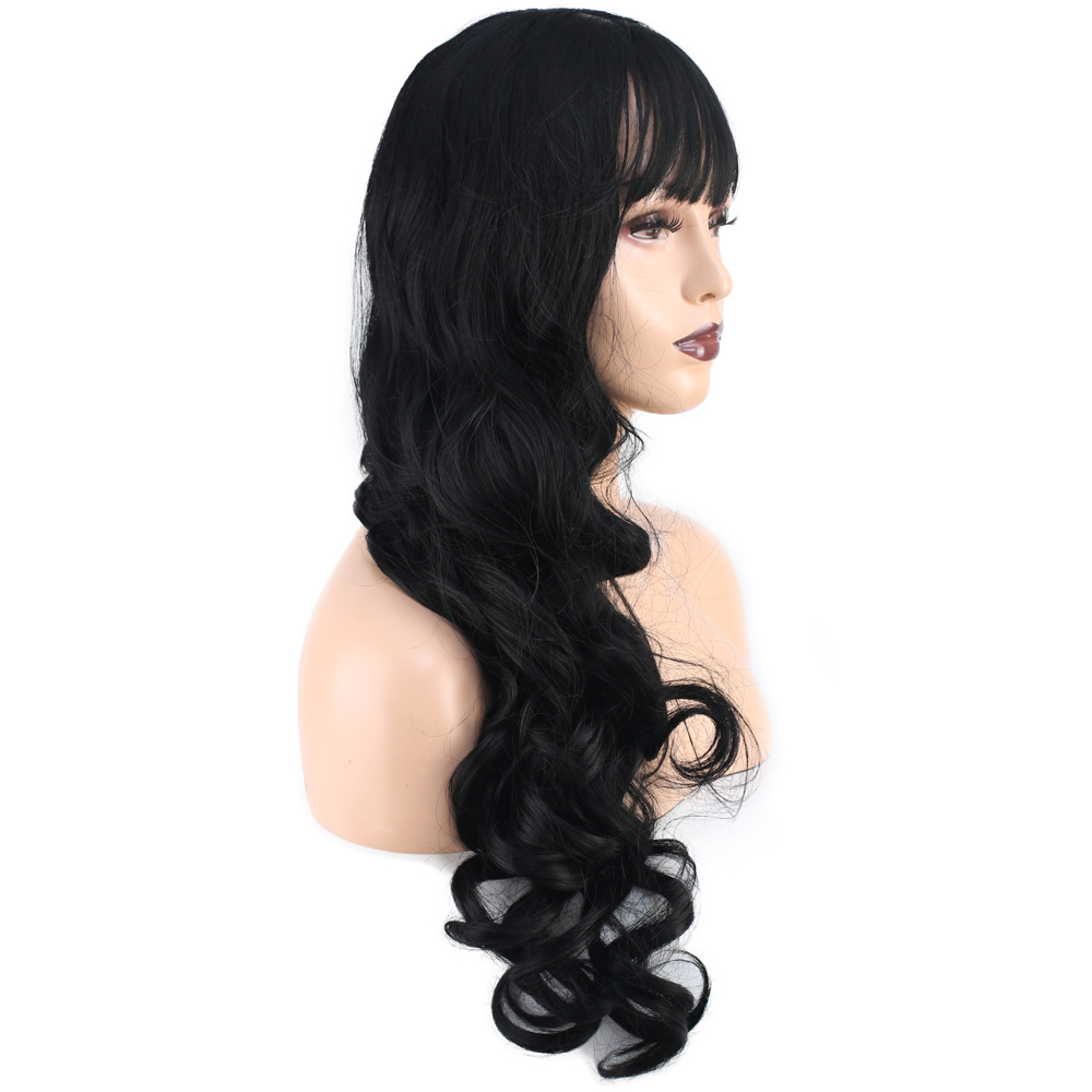 Dalgalı Perçemli Uzun Fiber Sentetik Peruk - Koyu Kestane