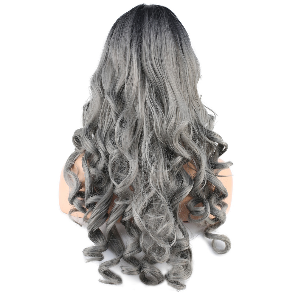 Dalgalı Perçemli Uzun Fiber Sentetik Peruk - Siyah / Gri Ombreli