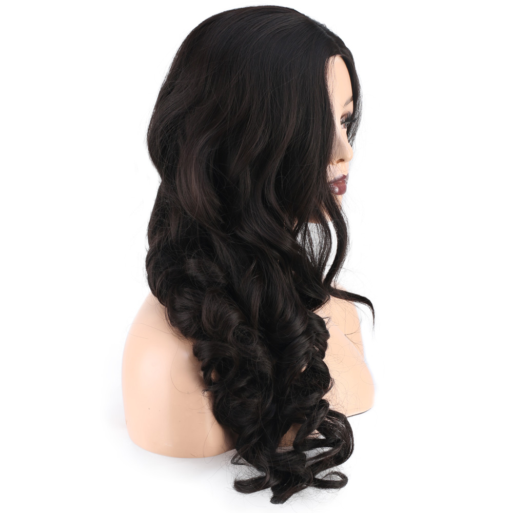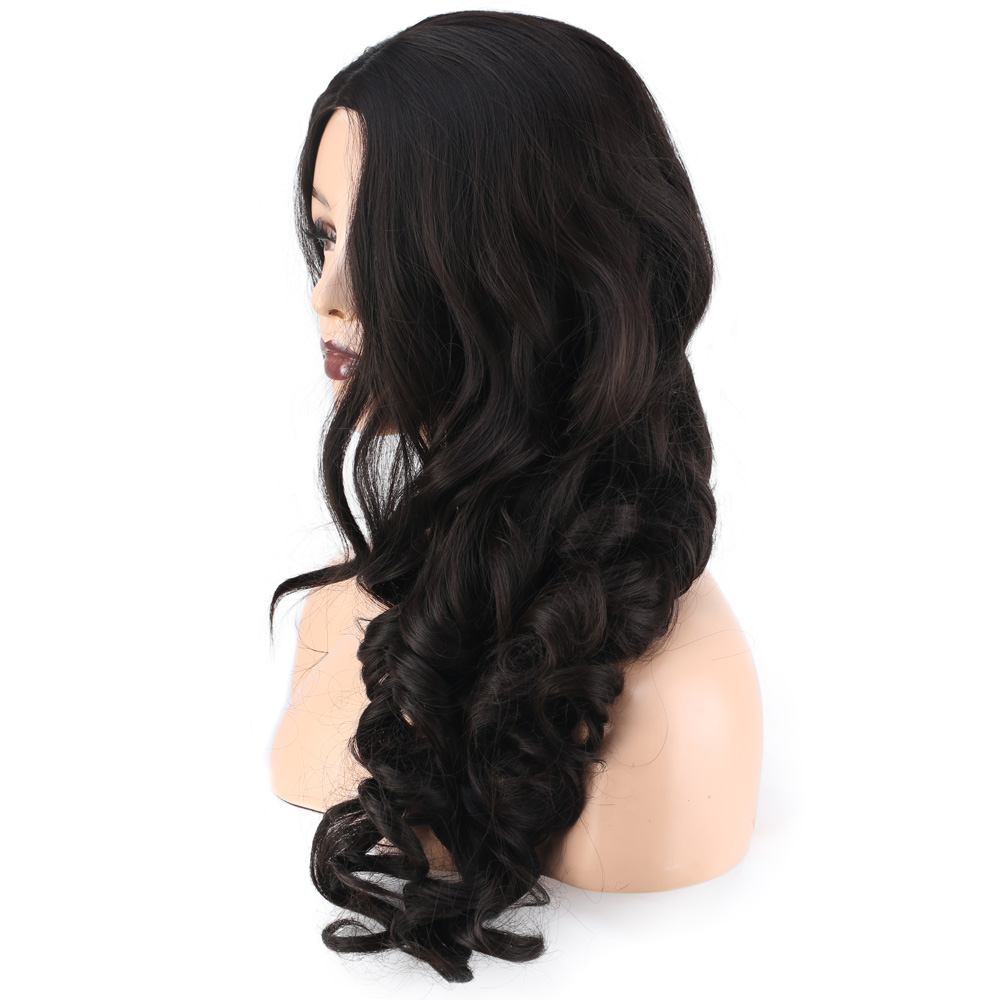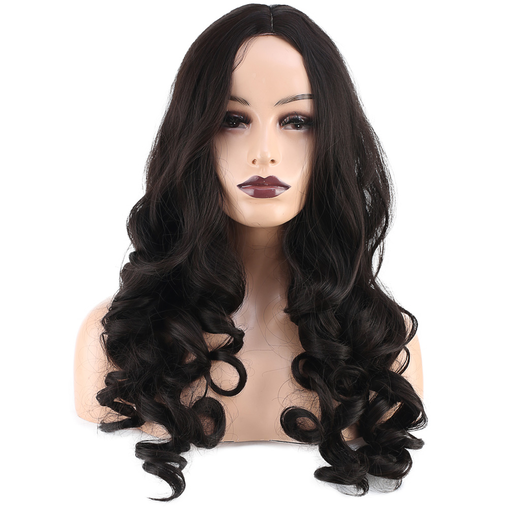 Dalgalı Perçemsiz Uzun Fiber Sentetik Peruk - Kestane
