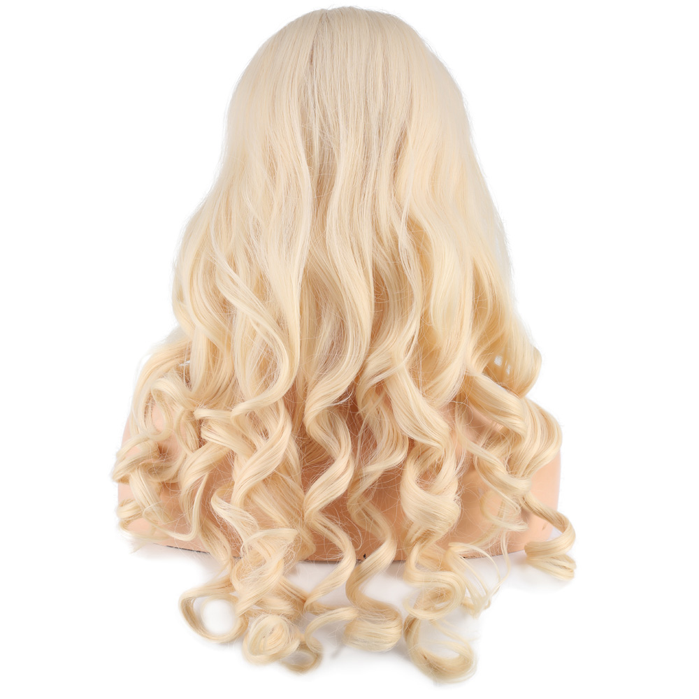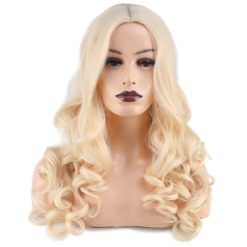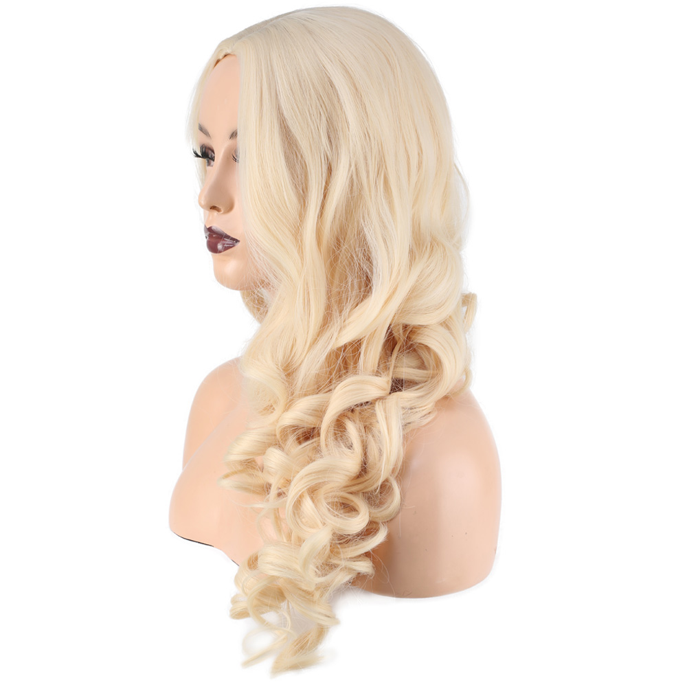 Dalgalı Perçemsiz Uzun Fiber Sentetik Peruk - Platin