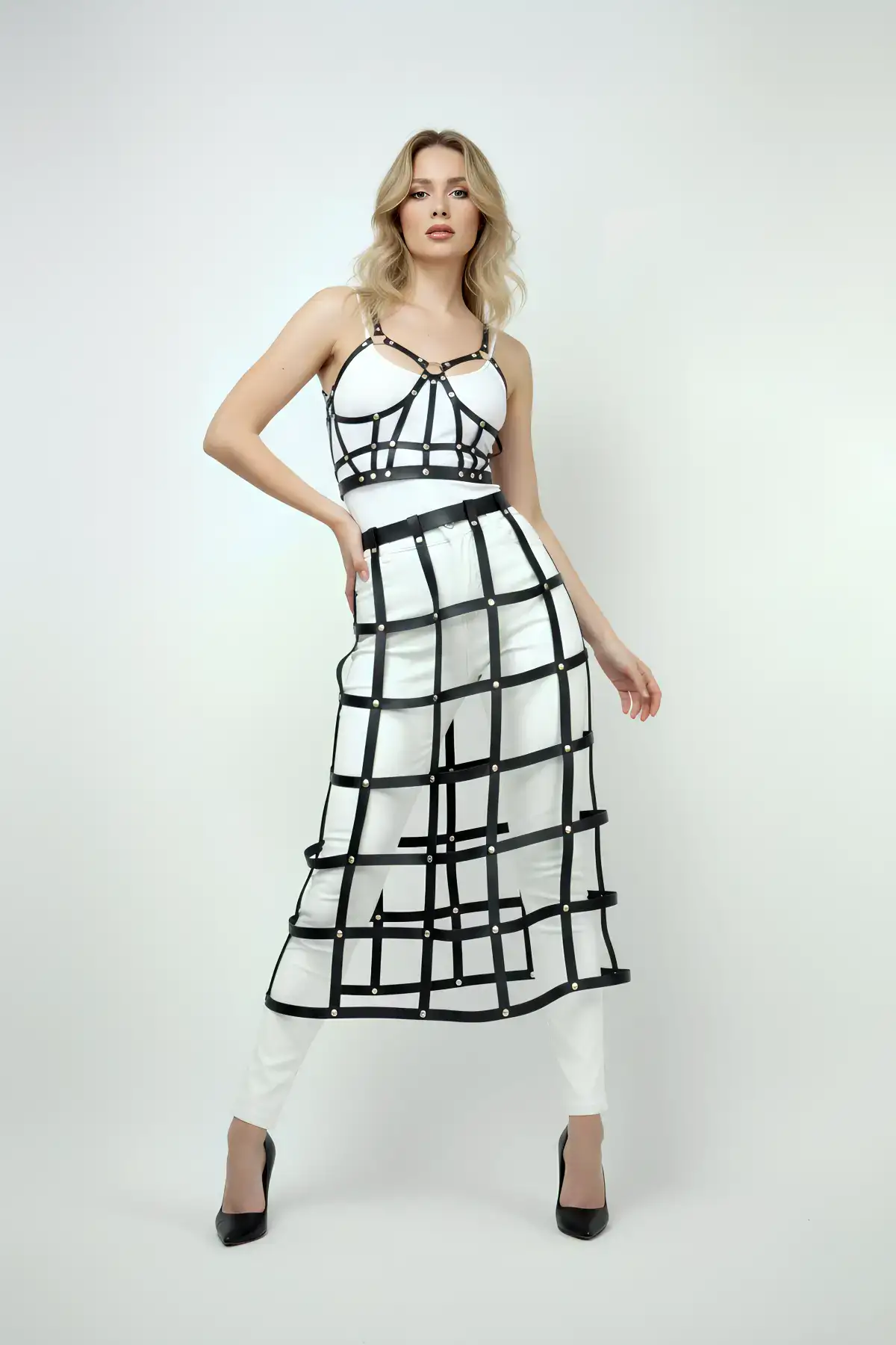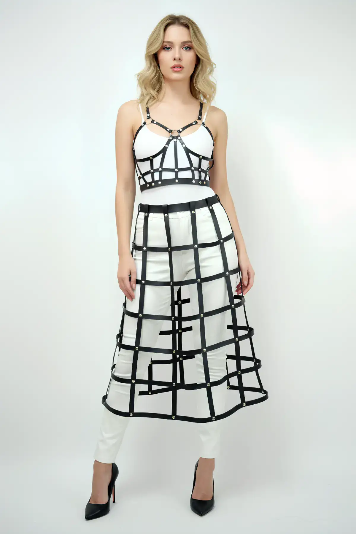 • Ürün ve paket içeriği: 2 parça (1 ad. Deri Göğüs Harness , 1 ad. Deri Etek Harness) İç çamaşırı dahil değildir.