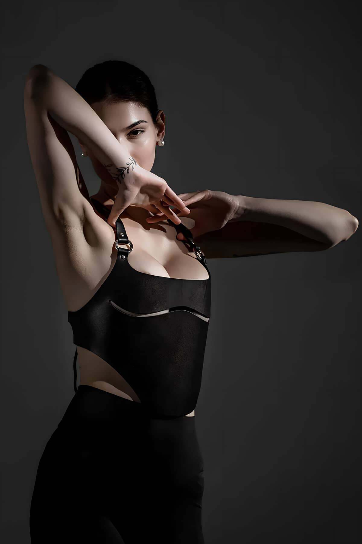 Deri Göğüs Harness, Şık Deri Büstiyer - APFT1406