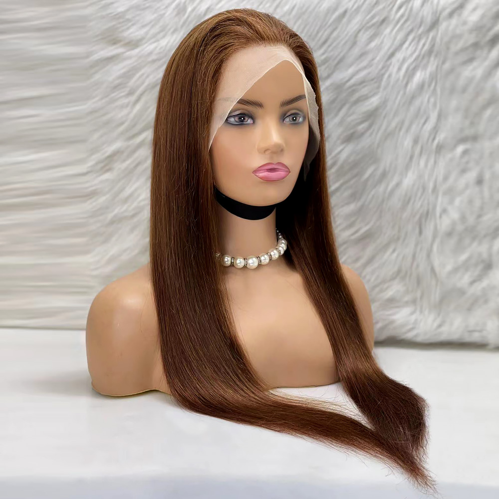 Düz Front Lace Gerçek Tül Peruk - Açık Kahve - 70-75cm