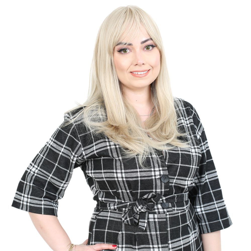 Düz Perçemli Orta Boy Fiber Sentetik Peruk - Balköpüğü / Platin Röfleli