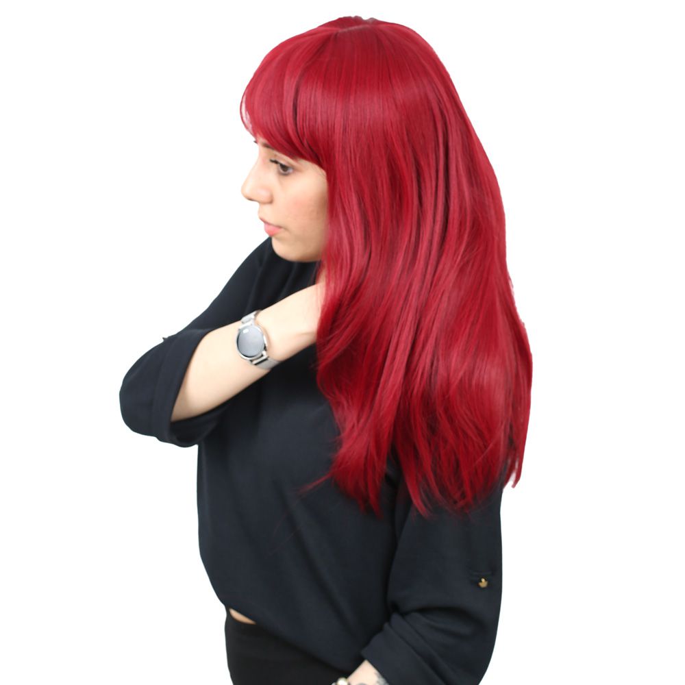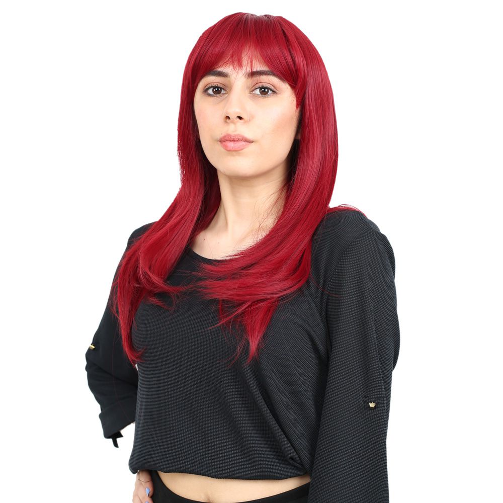 Düz Perçemli Orta Boy Fiber Sentetik Peruk - Kızıl