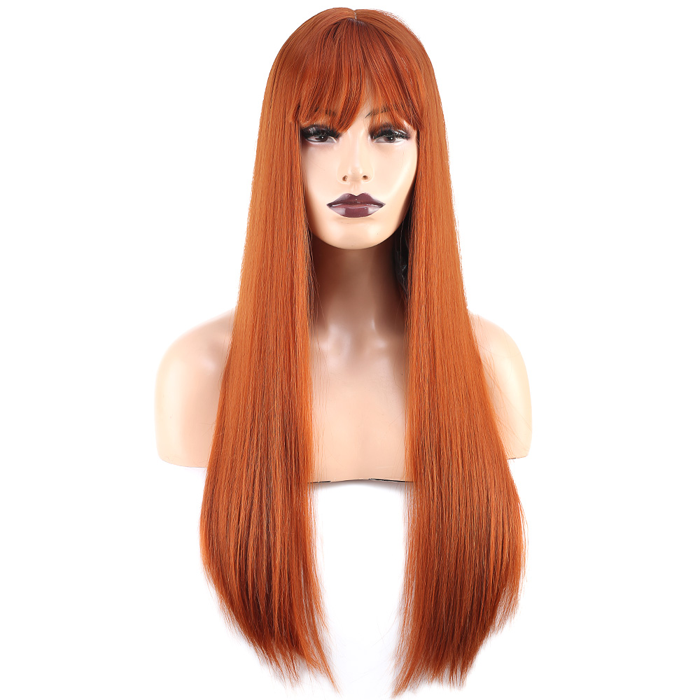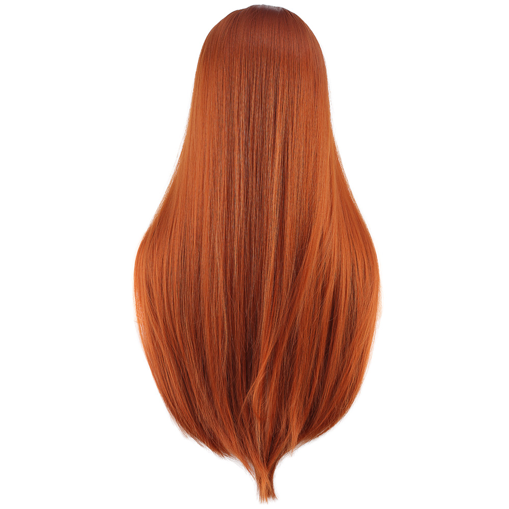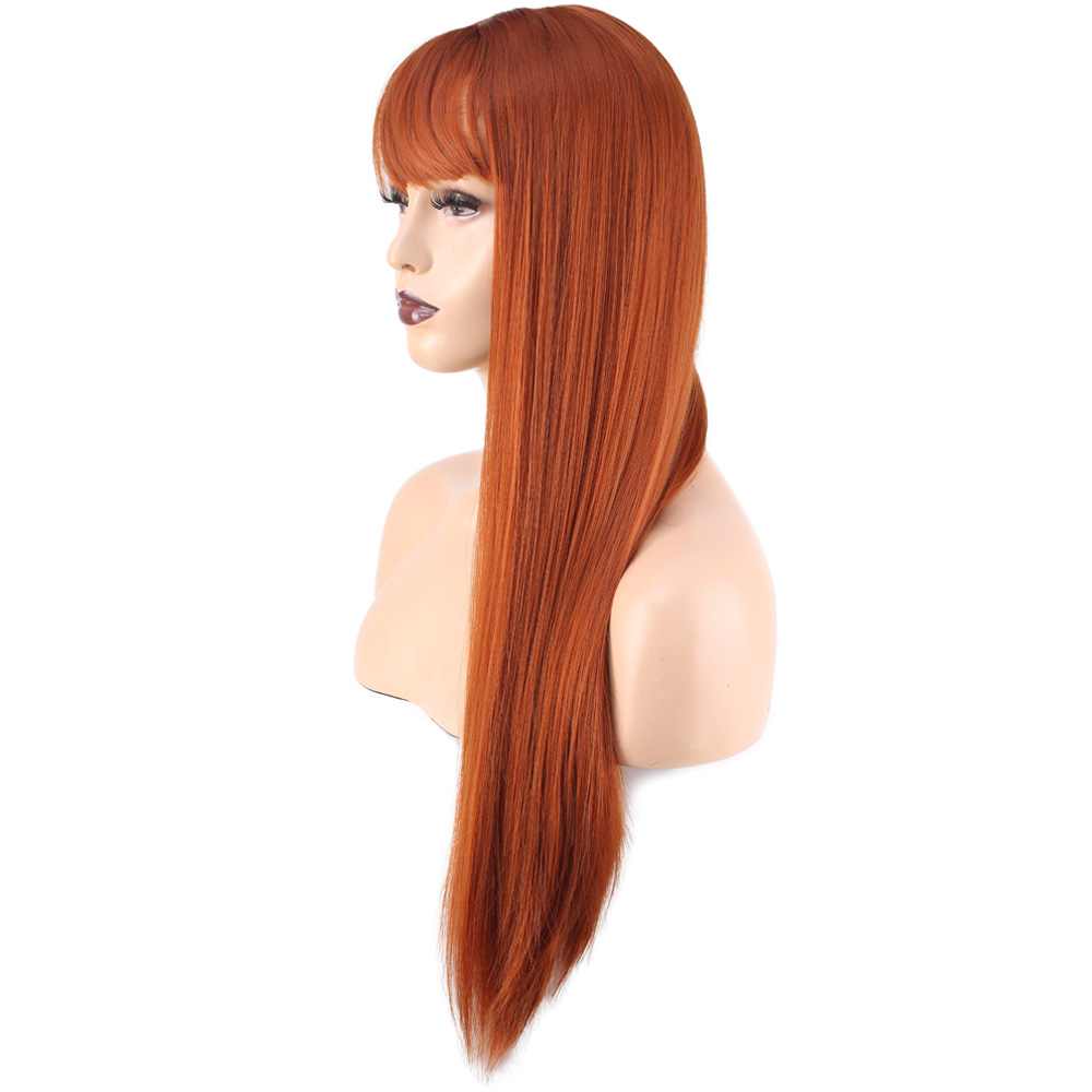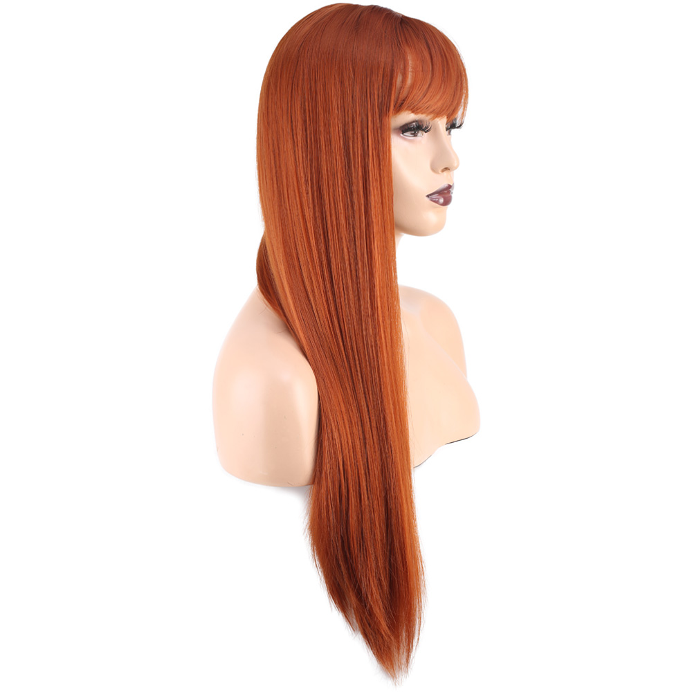 Düz Perçemli Orta Boy Fiber Sentetik Peruk - Bakır