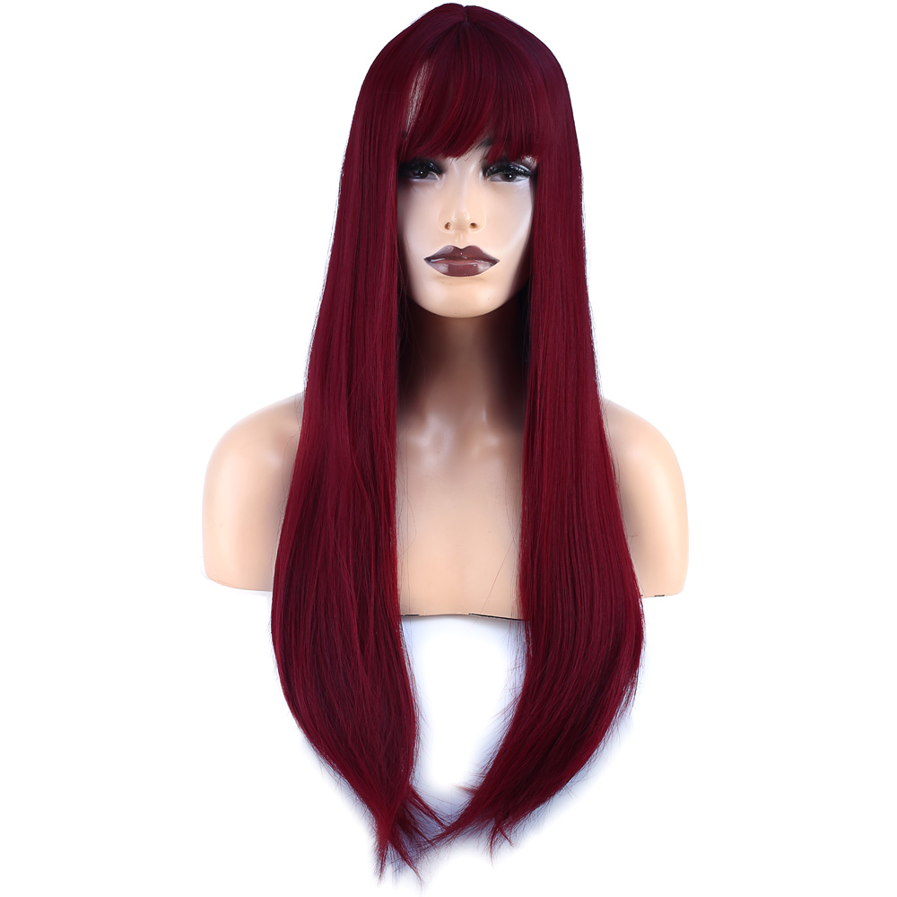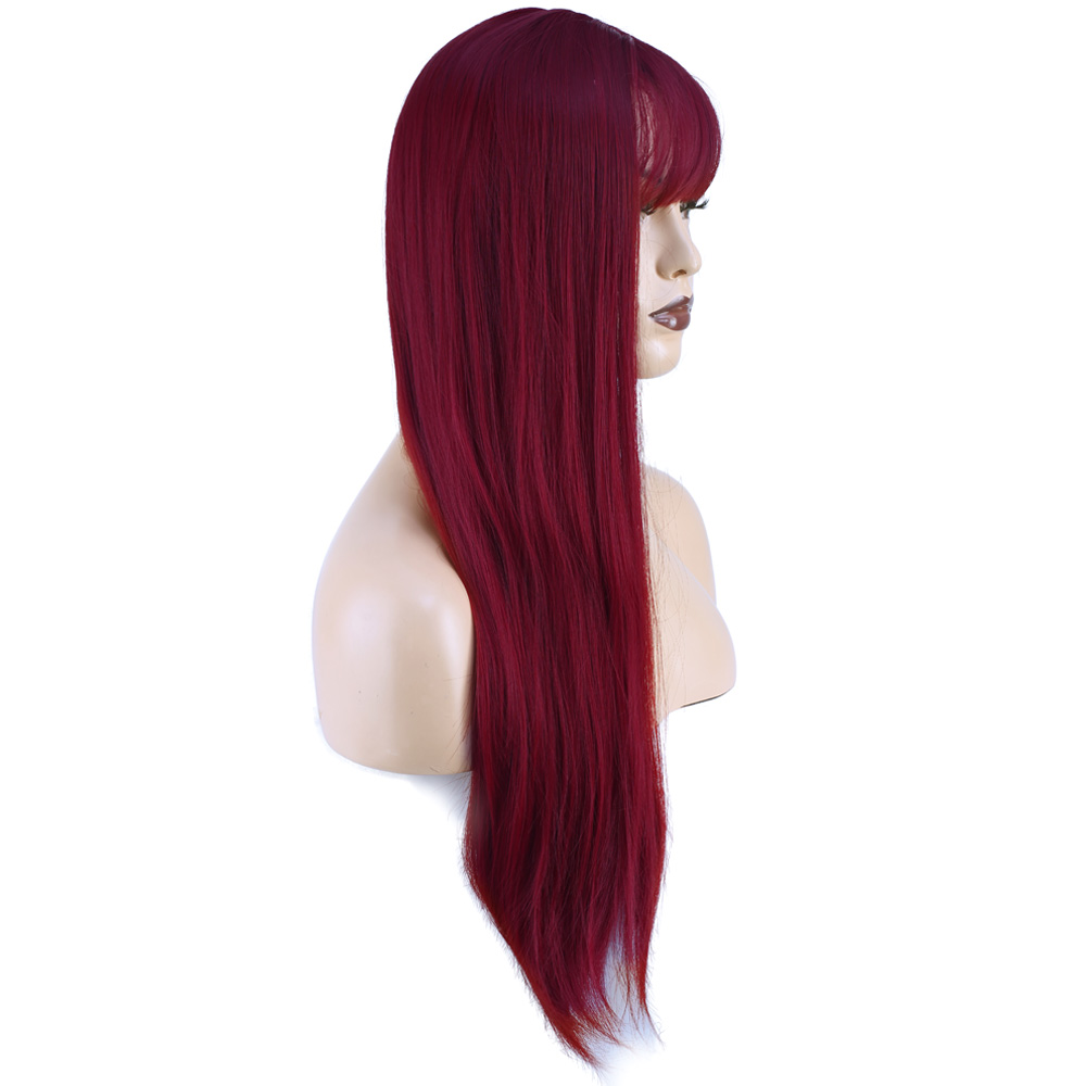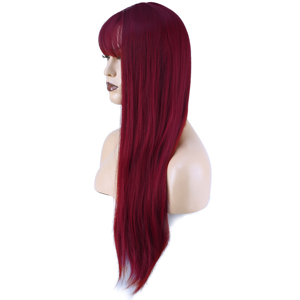 Düz Perçemli Uzun Fiber Sentetik Peruk - Kızıl