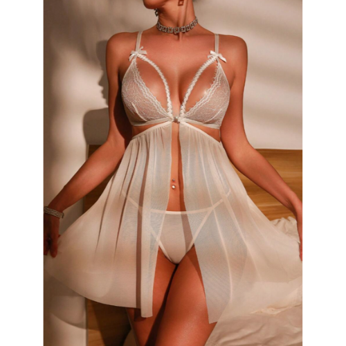 Ürün 2 parçadan oluşmaktadır. 1 adet Gecelik ve 1 adet String. Ürünün Üst Kısmı Dantelden Alt Kısmı Transparan Tül den Üretilmiştir.Sütyen Önden Kopçalıdır.