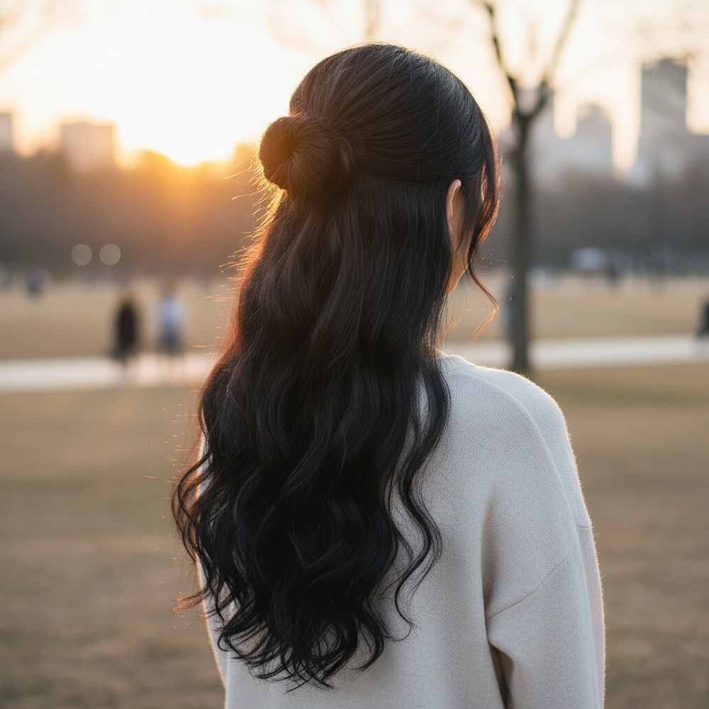 Fiber Sentetik Dalgalı Yarım Ay + 2 Yan Çıt Çıt - Siyah