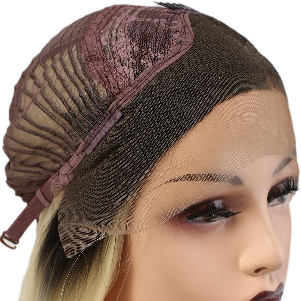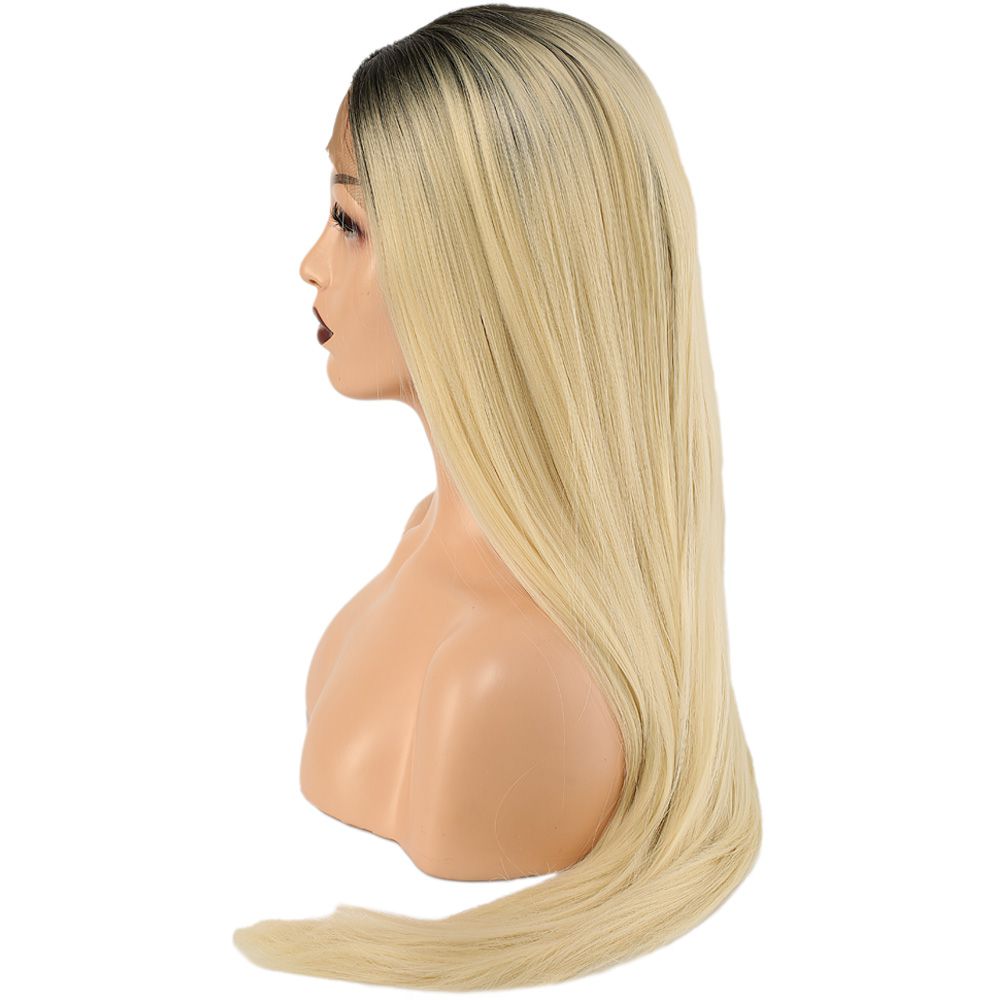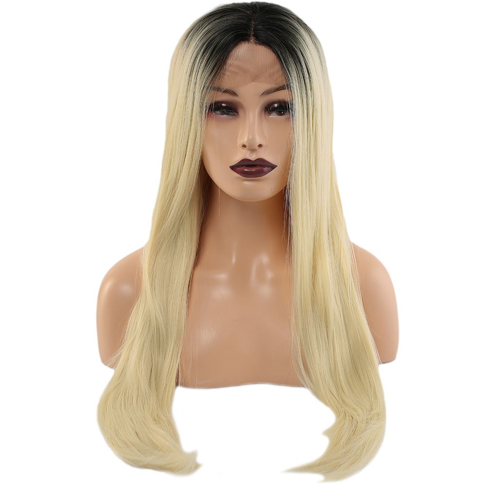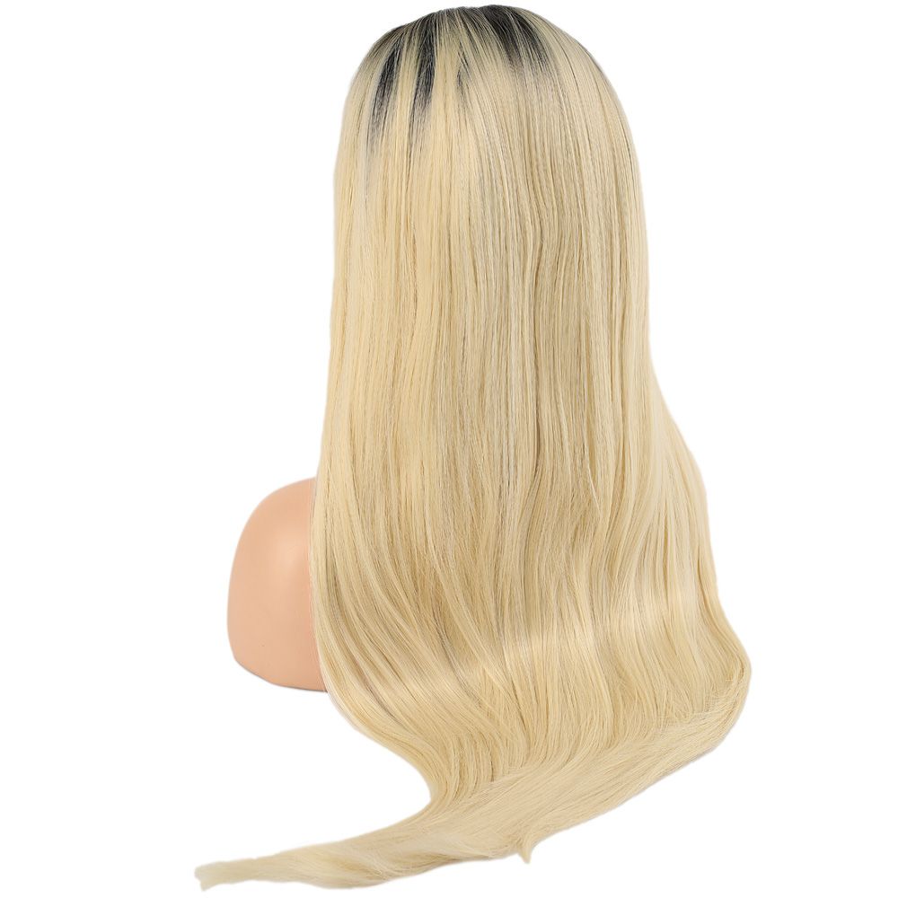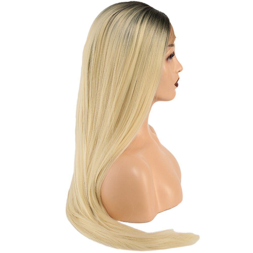 Fiber Sentetik Düz Uzun Tül Peruk - Siyah Platin Uzun Ombreli