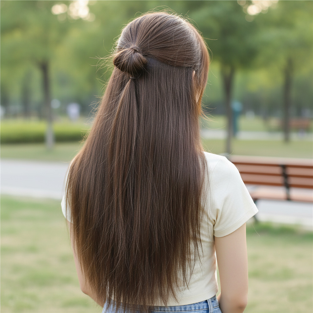 Fiber Sentetik Düz Yarım Ay + 2 Yan Çıt Çıt - Açık Kahve