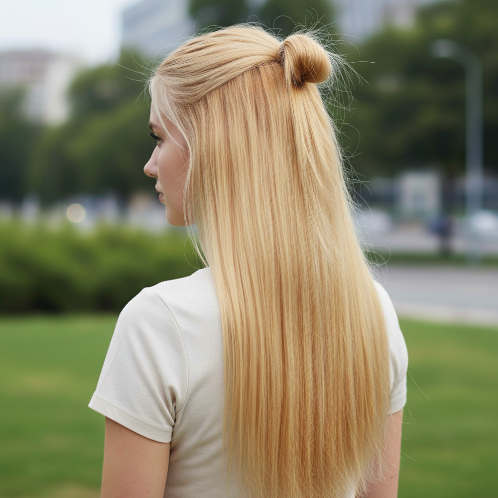 Fiber Sentetik Kabarık Dalgalı Yarım Ay + 2 Yan Çıt Çıt - Balköpüğü Beyaz Platin Röfleli