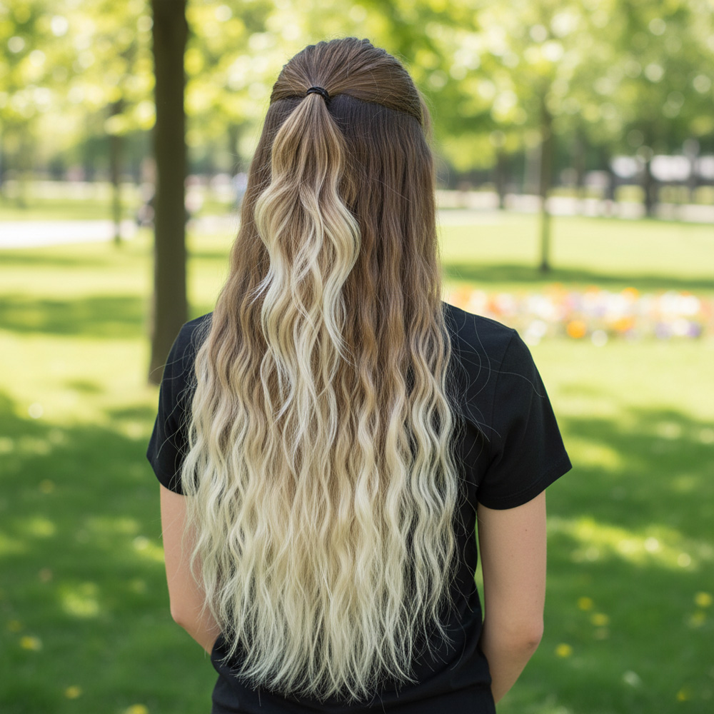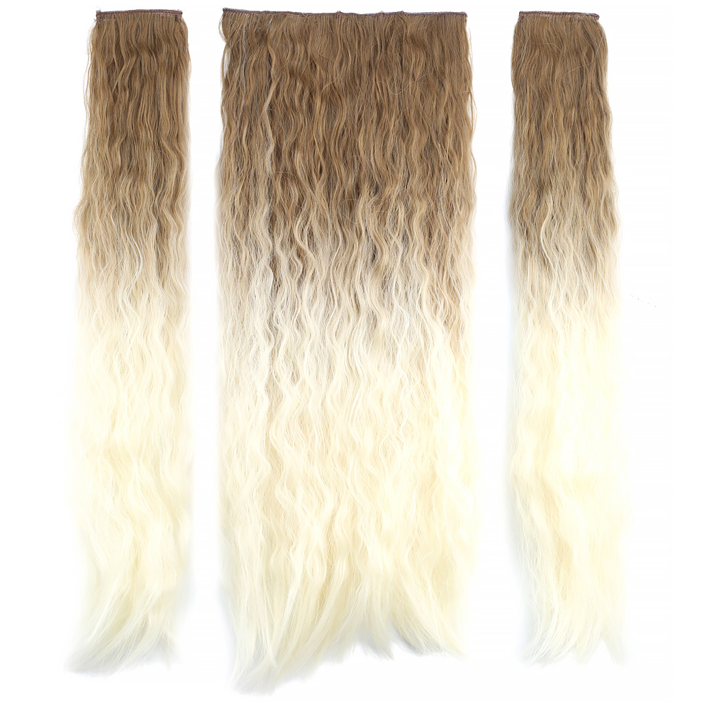 Fiber Sentetik Kabarık Dalgalı Yarım Ay + 2 Yan Çıt Çıt - Kumral Platin Ombreli