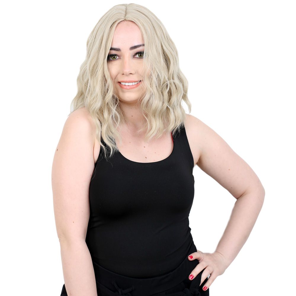 Fiber Sentetik Kısa Dalgalı Perçemsiz Peruk - Balköpüğü / Platin Röfleli